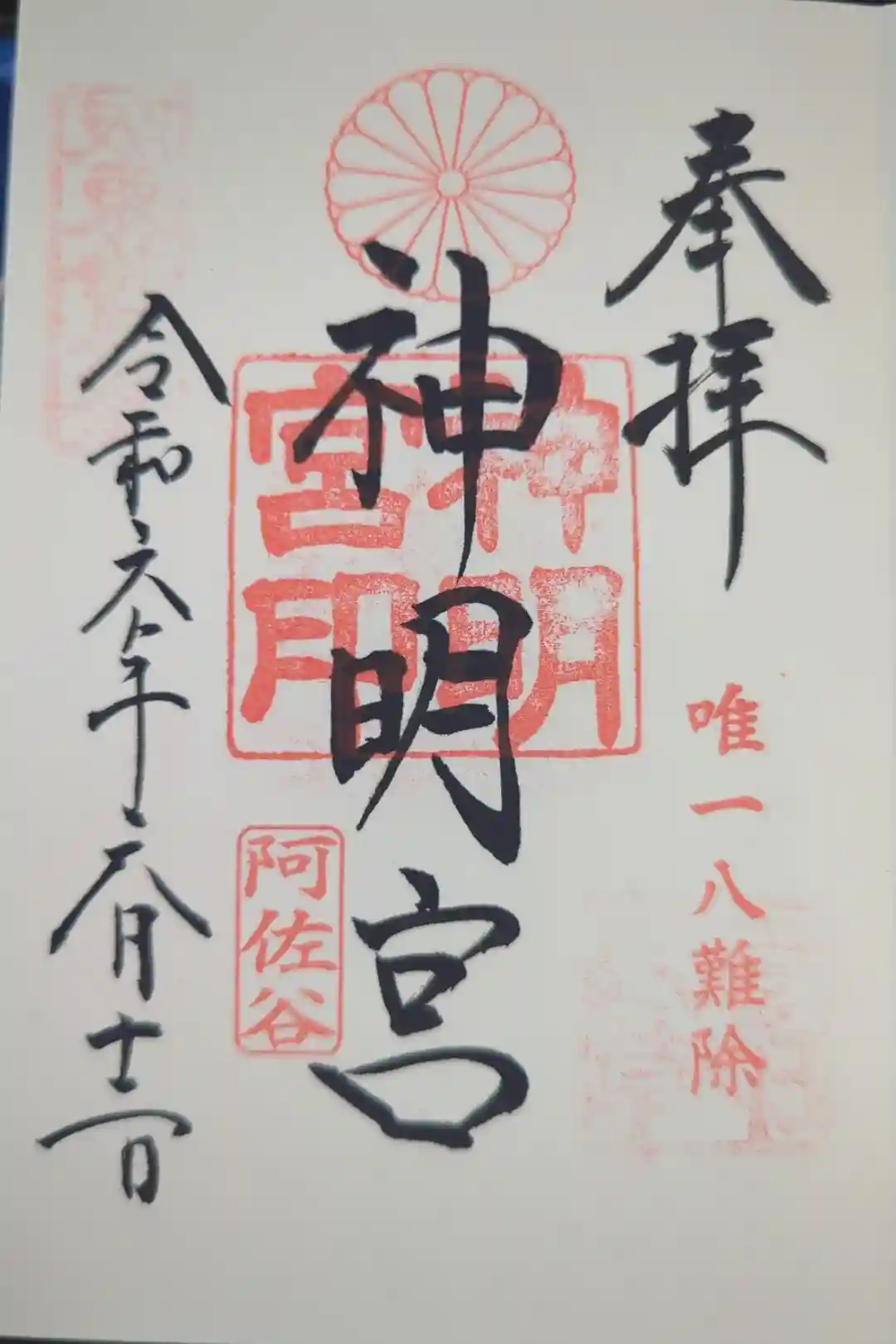 裏面には、菊のご神紋と阿佐ヶ谷神明宮の文字がデザインされています。