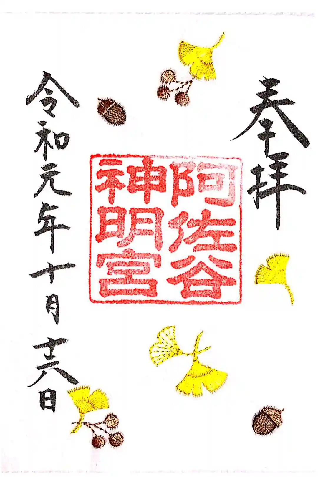 神社印が黄色く押され、まるで月のようです。