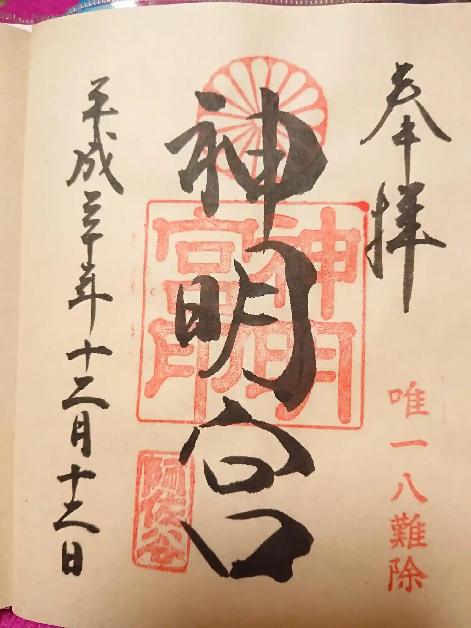 通常は神明宮と月讀社と二種類の御朱印を頂けますが、この日は神明宮のみとなります。