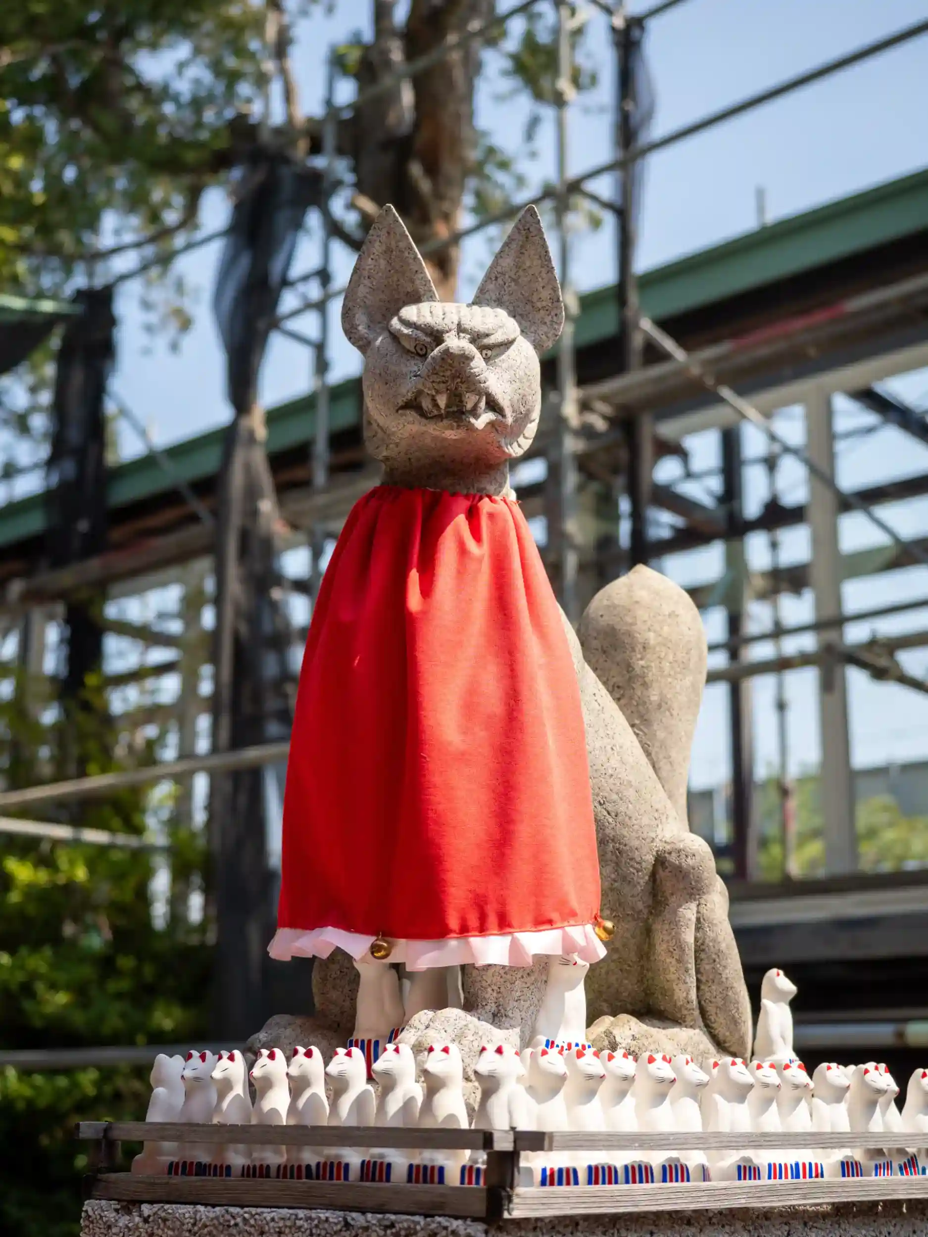 拝殿前の狛狐さまは周りに小さな狐がたくさん!