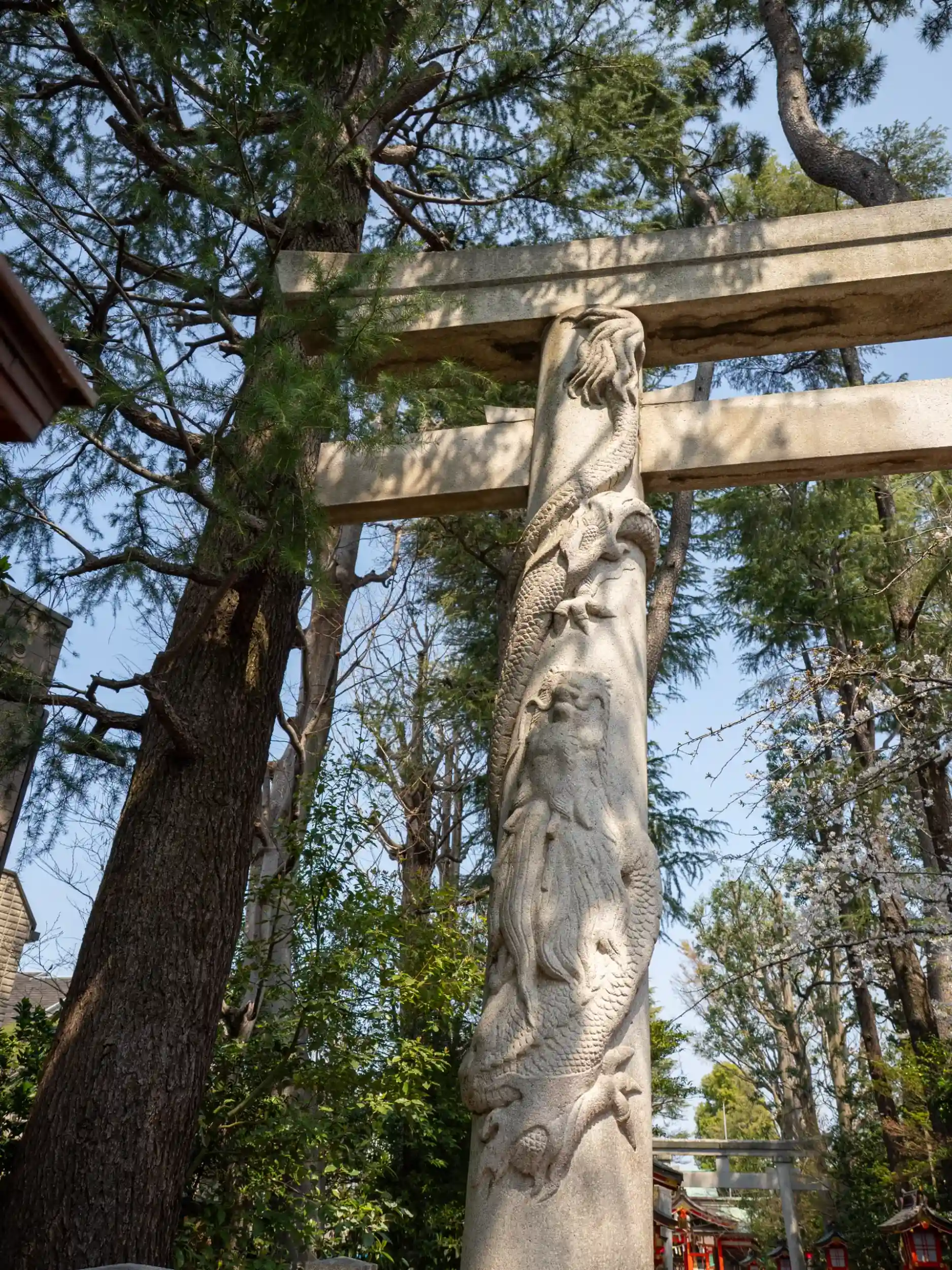 二の鳥居は石でできていて柱には龍がいます🐉
