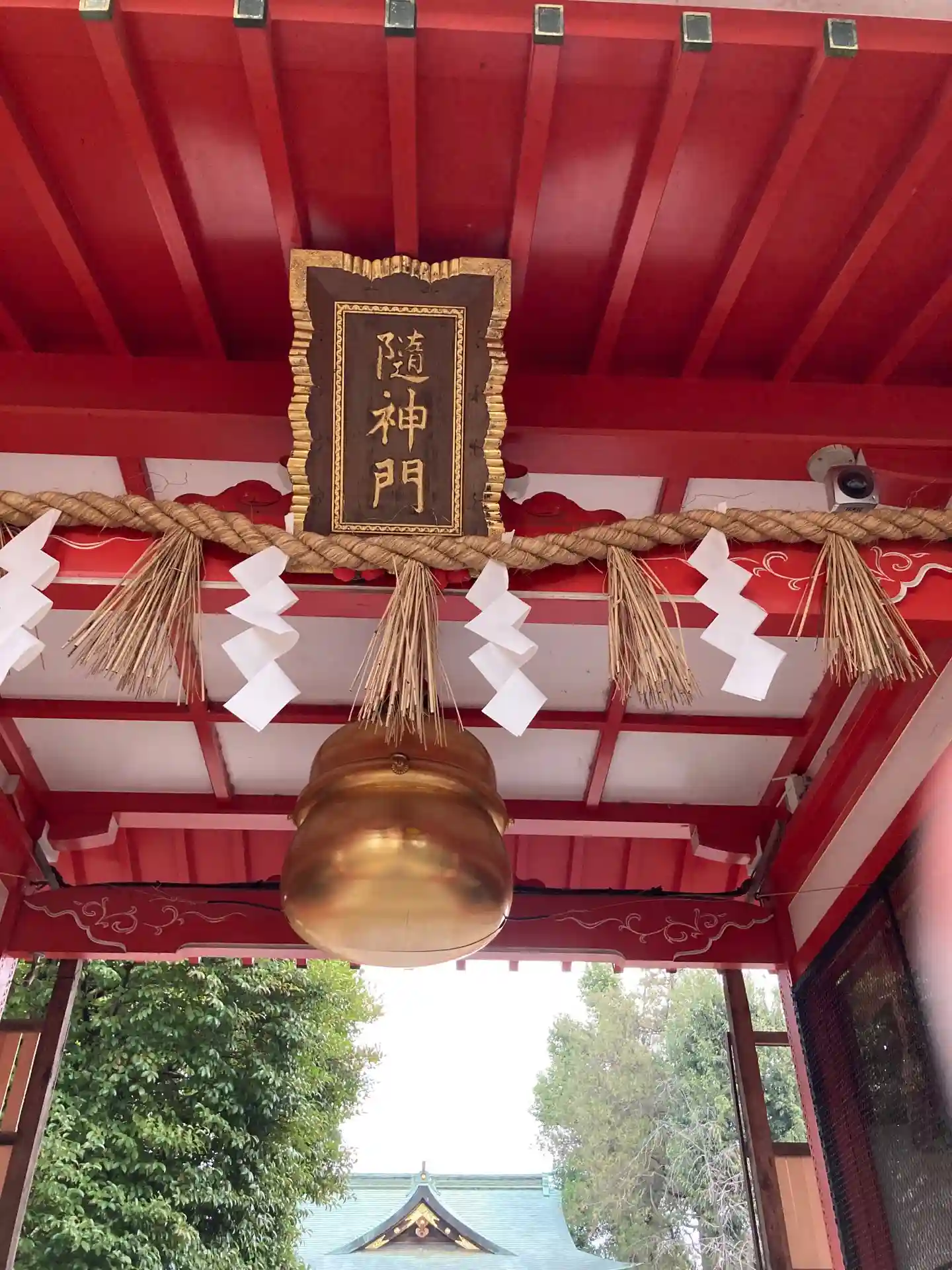 随神門。中央天井に直径75cm、都内最大の開運鈴が吊るされています。