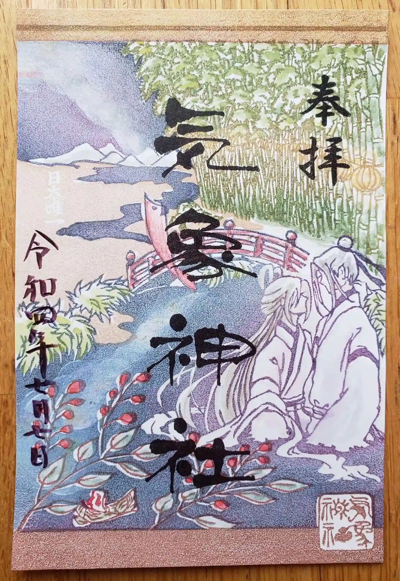 今月も繊細な消しゴム判子の御朱印です。