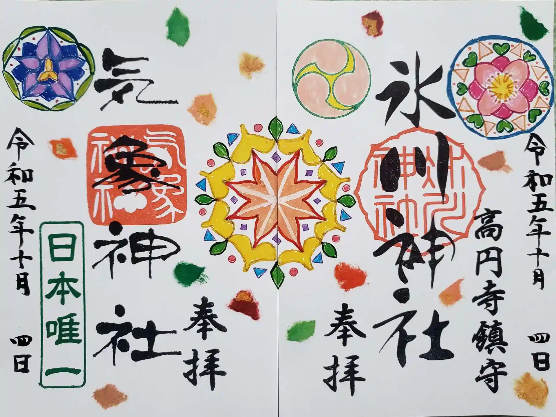氷川神社、気象神社、奥のお稲荷さんにお参りをして、月替わり御朱印をいただきました。