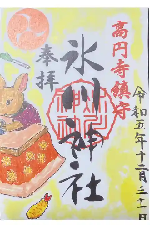 氷川神社と気象神社合わせると、うさぎさんが年越しそばを食べている可愛い御朱印になります💕