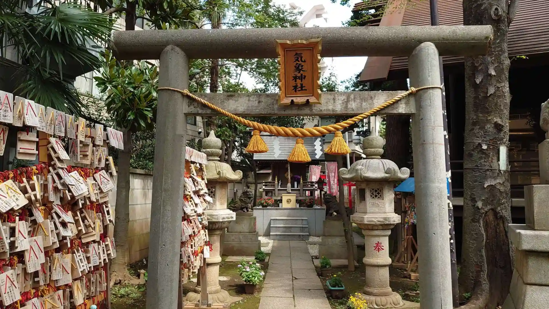 気象神社の鳥居には今まで無かった社額が設置されておりました。