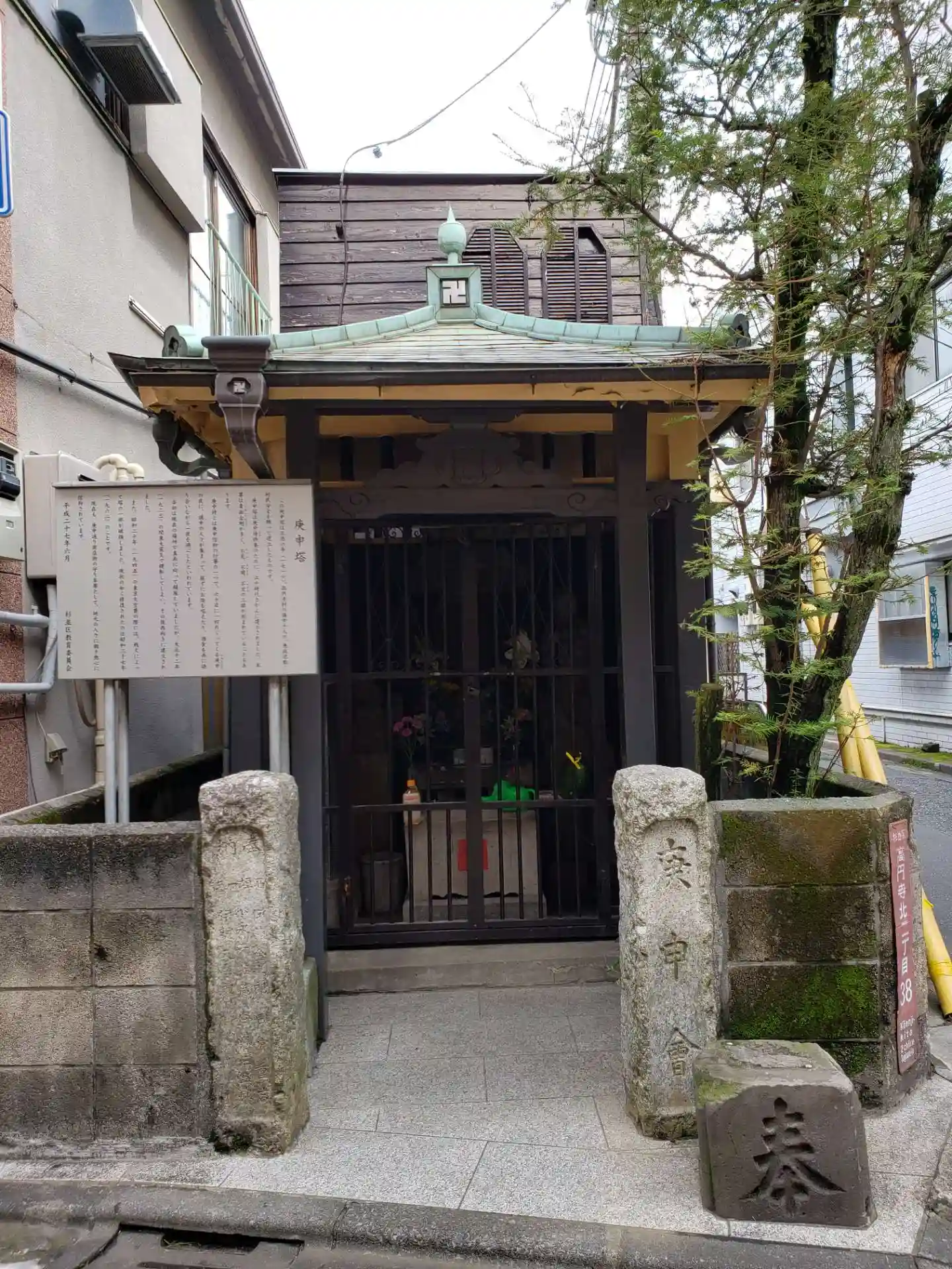 高円寺庚申通り商店街の中にありました。柵越しですが、きれいに管理されていました。