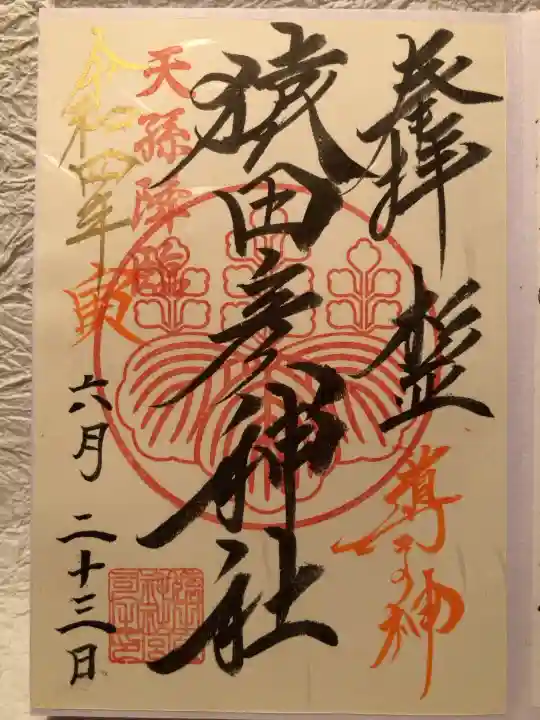 御朱印300円は猿田彦神社と太道教の2種類、しおり(自分で選ぶ)も一緒にいただけます。