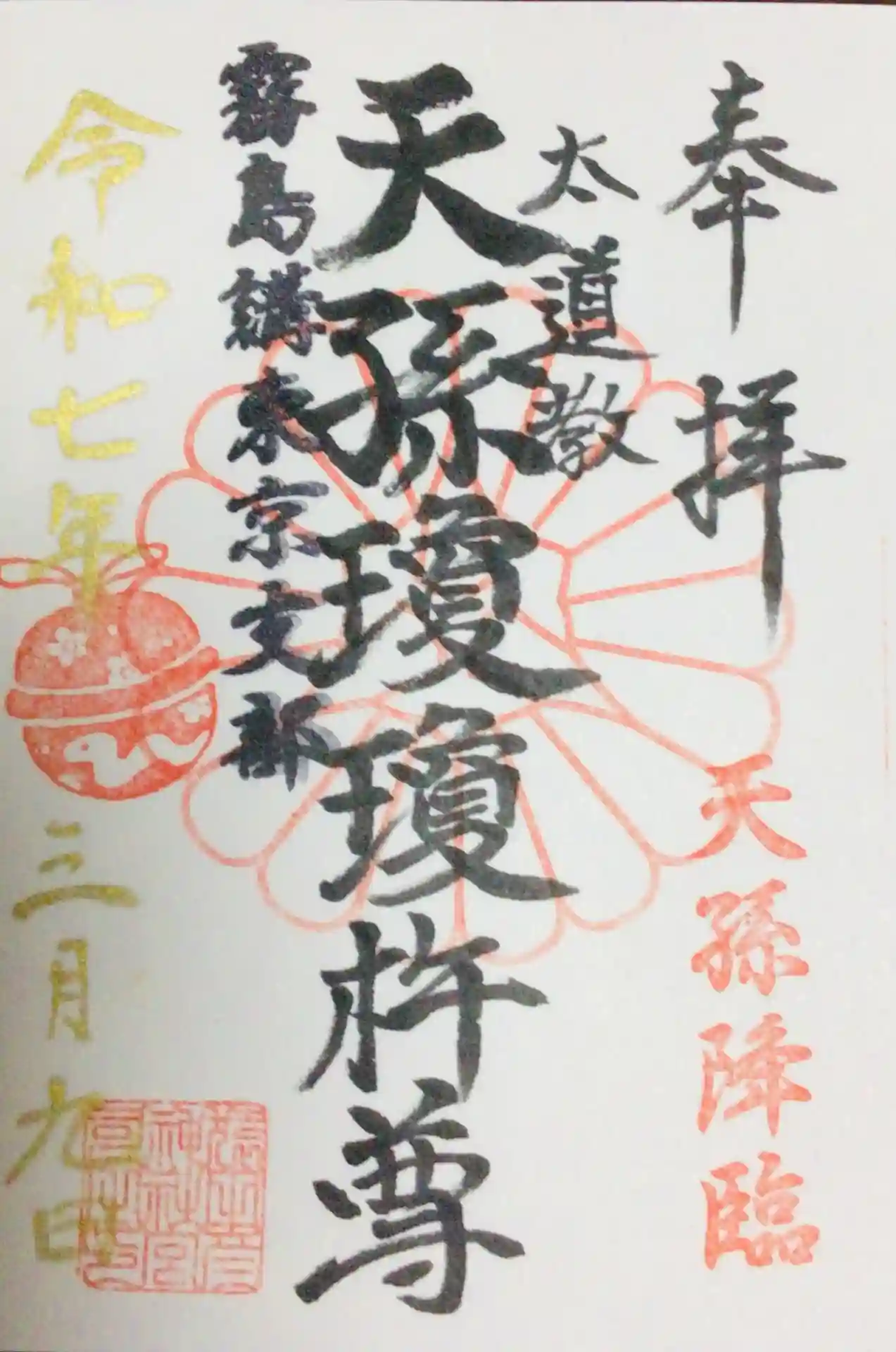 お正月限定金和紙瓊瓊杵尊御朱印