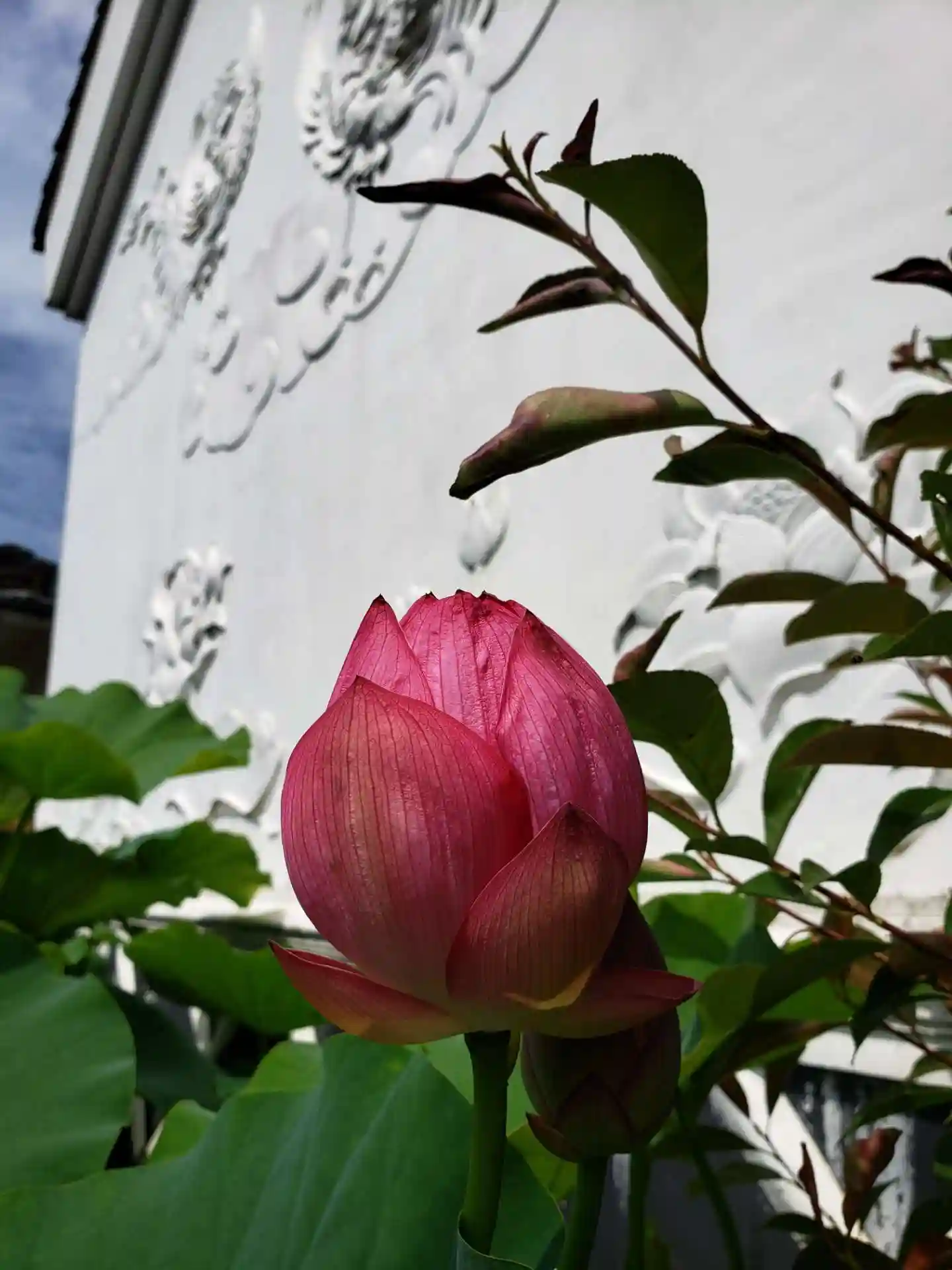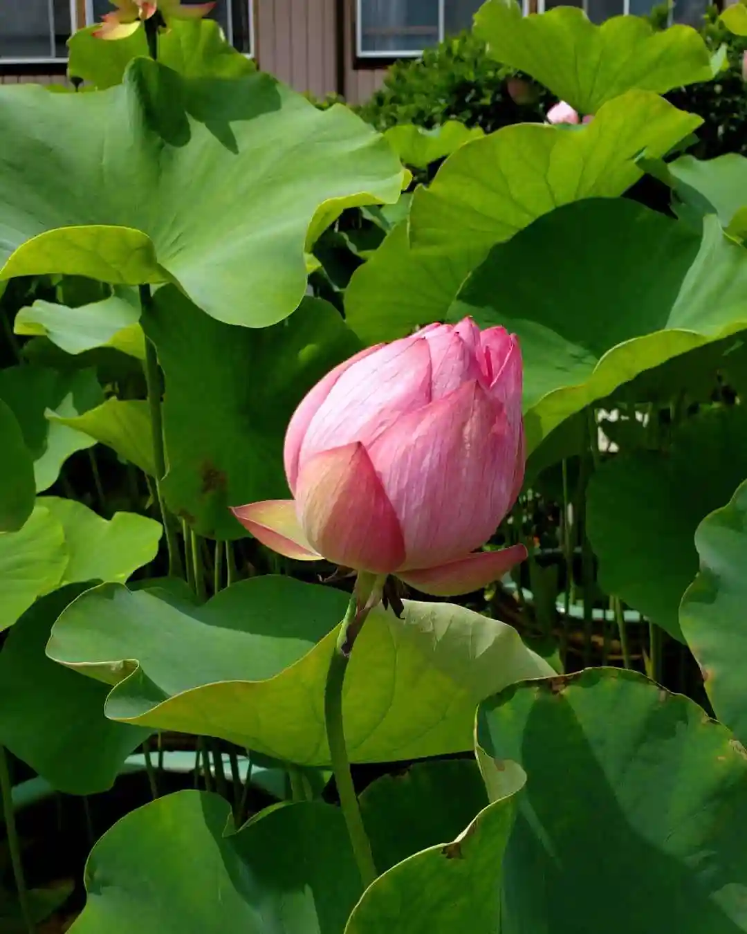 三度目のお参りです。前回、境内にたくさんある蓮に、少し蕾が見られ、開花を楽しみにしていました。蓮の花を見るには午前中がベストとのことですが、なかなか午前中には伺えず、午後の訪問ですが、緑の元気な蓮の葉と、ふっくら丸い蕾と、いくつか咲いている花とが素敵でした。