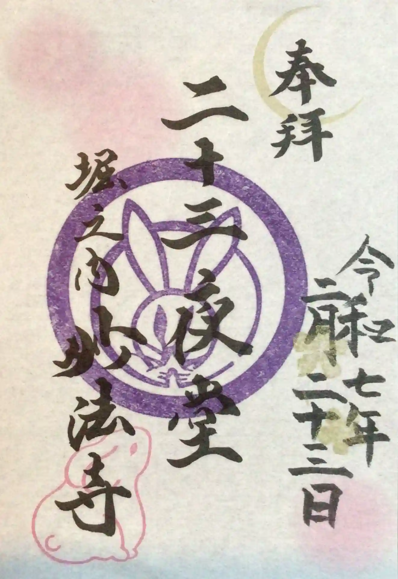 23日だけ頒布の二十三夜堂御朱印(妙法寺さんでは他の御朱印、御首題はお書き入れ頂けますが、この二十三夜堂は月に一回書き置きのみですが、毎月、柄か色合いが違います)祖師堂にて頂けます。