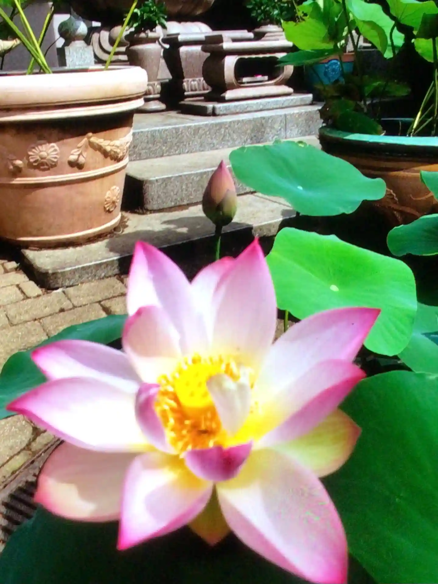 さほど広くない境内ですが、蓮の鉢がた…