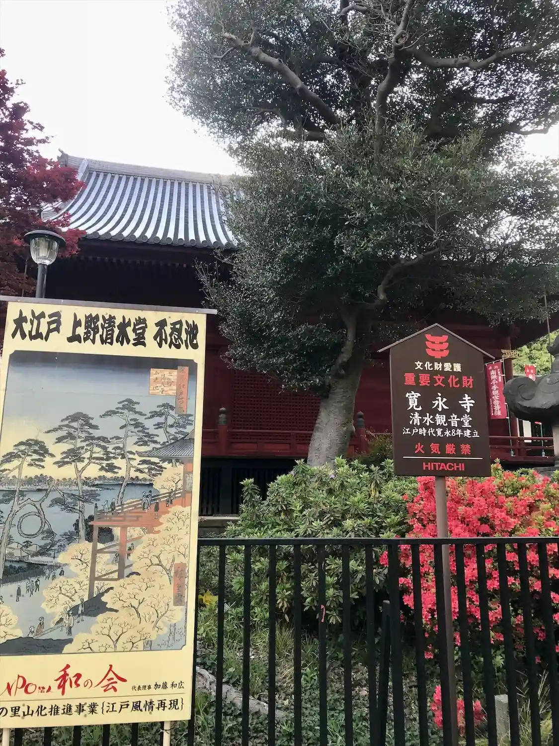 京都の清水寺の義乗院春海上人から、同寺安置の千手観世音菩薩像が天海大僧正に奉納されたことにちなみ、清水寺と同じ舞台作りで、初めは上野公園内の擂鉢山に建てられた。