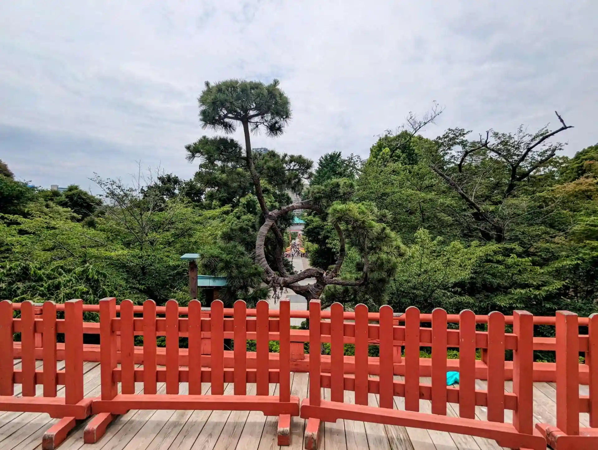 東叡山寛永寺を開山した天海大僧正が京の清水寺に倣って建立した清水観音堂。月の松は、円を描いた不思議な松。