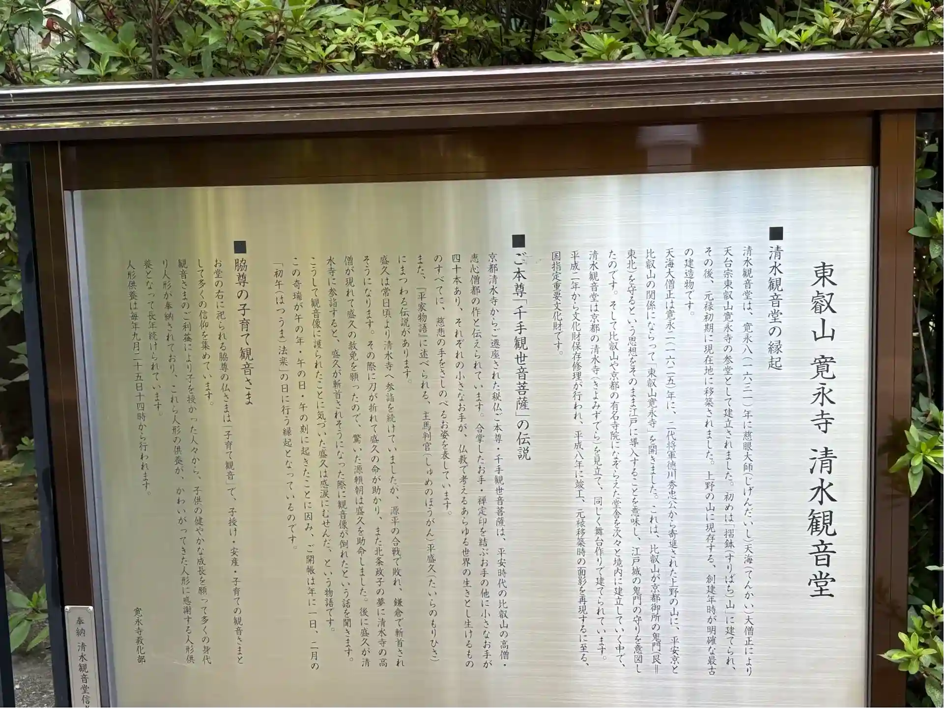 御本堂内は写真撮影禁止ですが、清水寺を参考にされただけあって、都内に居るのを忘れる様な、中に入ると気持ちが落ち着きました😊