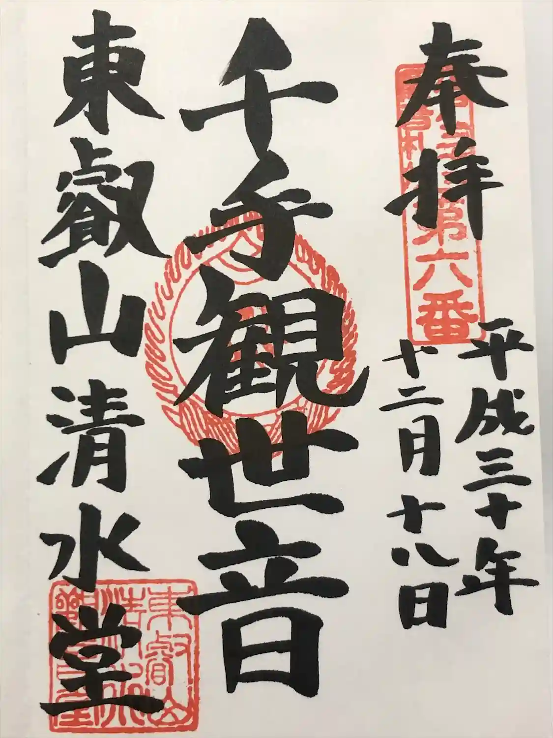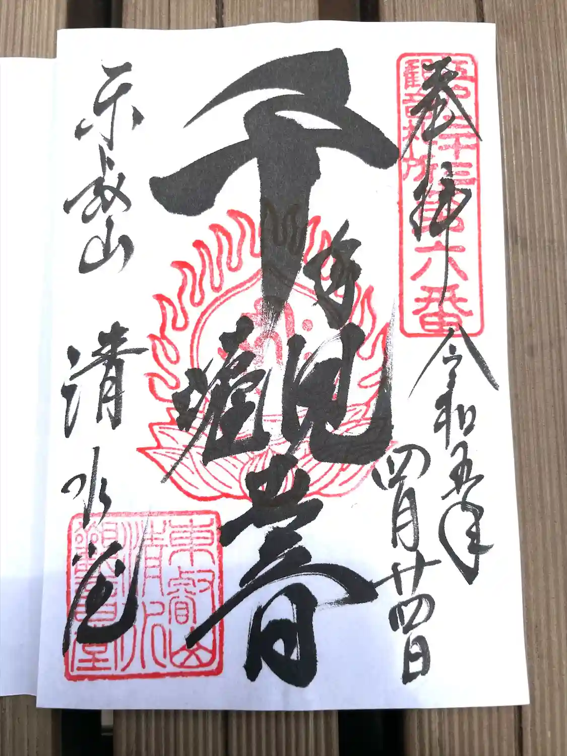 清水観音堂の御朱印を直書きでいただきました