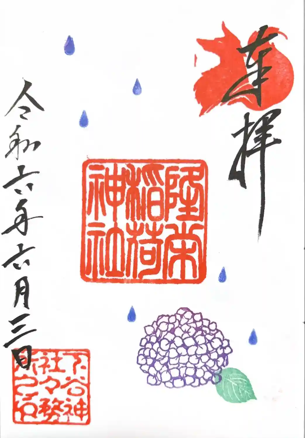 下谷神社境内社の隆栄稲荷神社の御朱印です。下谷神社で御拝受しました。