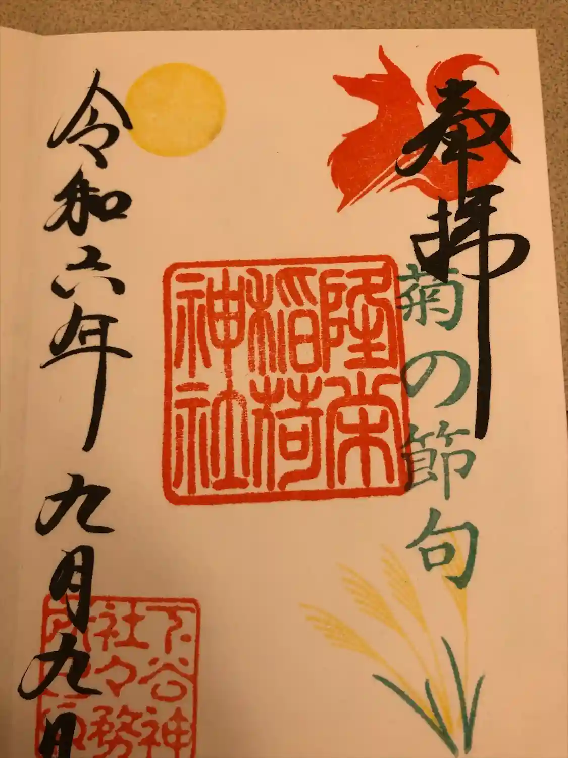 右上のお狐様のシルエットが箔押し