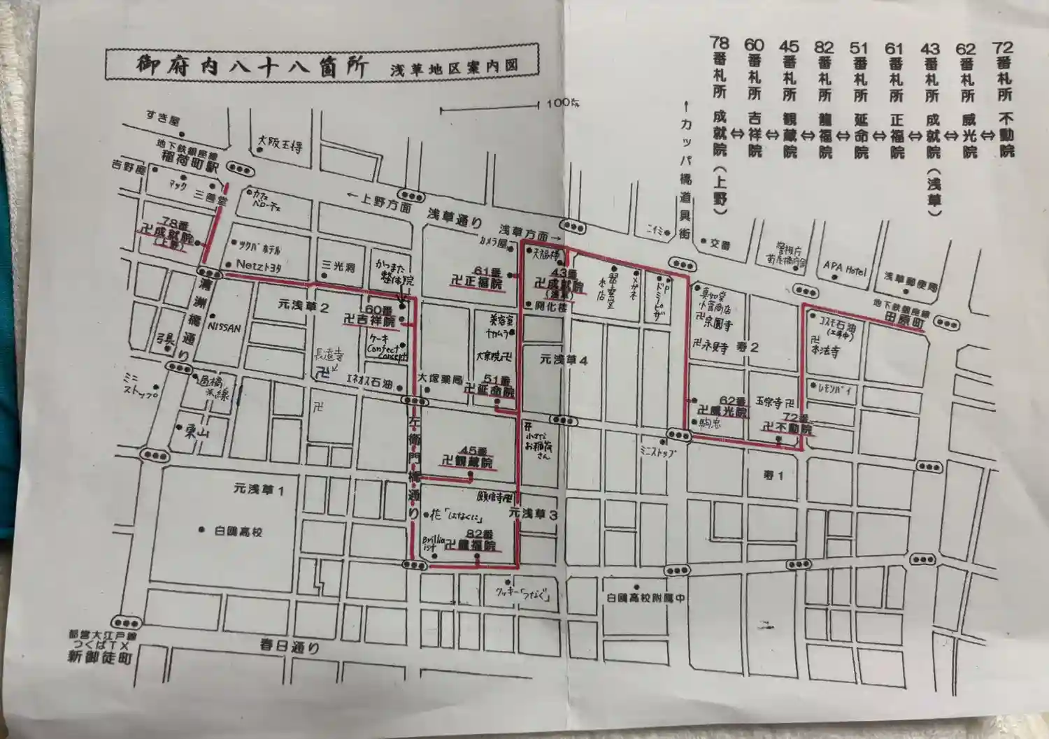 こちらで浅草地区の御府内八十八霊場の一筆書き地図をいただきました。