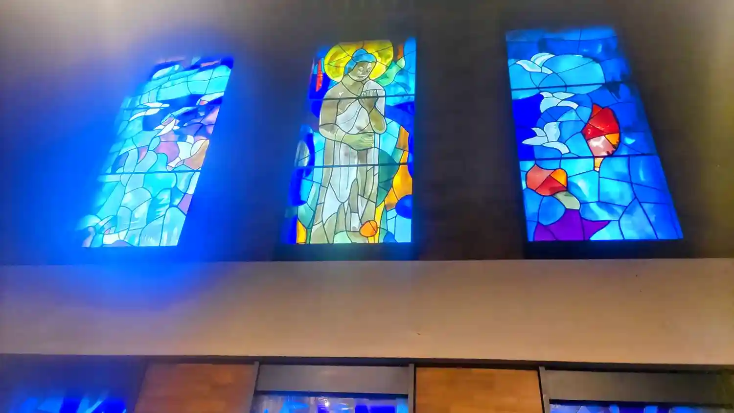御本堂の中のステンドグラスがとても綺麗でした。