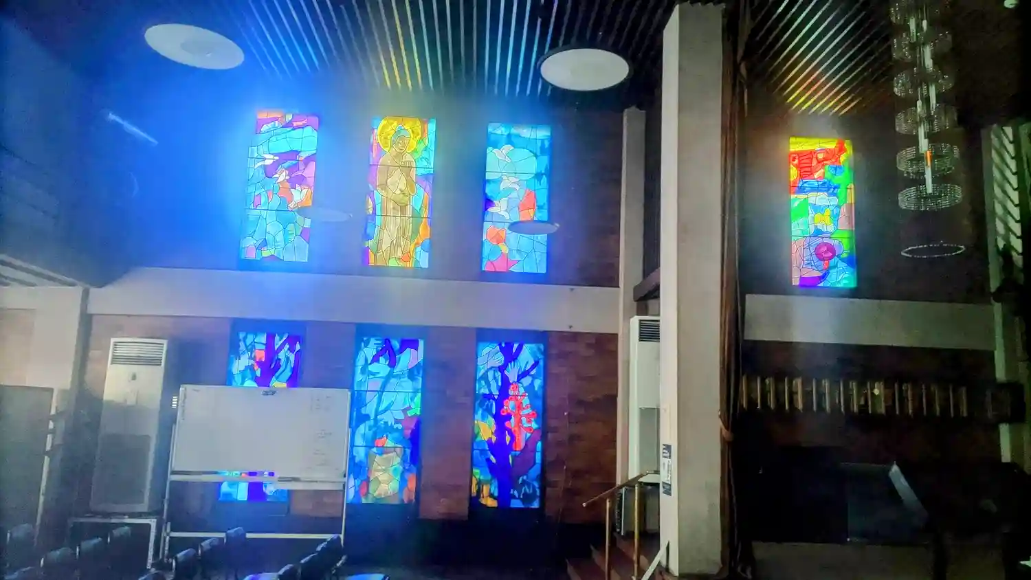 正面奥が本堂のようで、ステンドグラスが素敵でした。