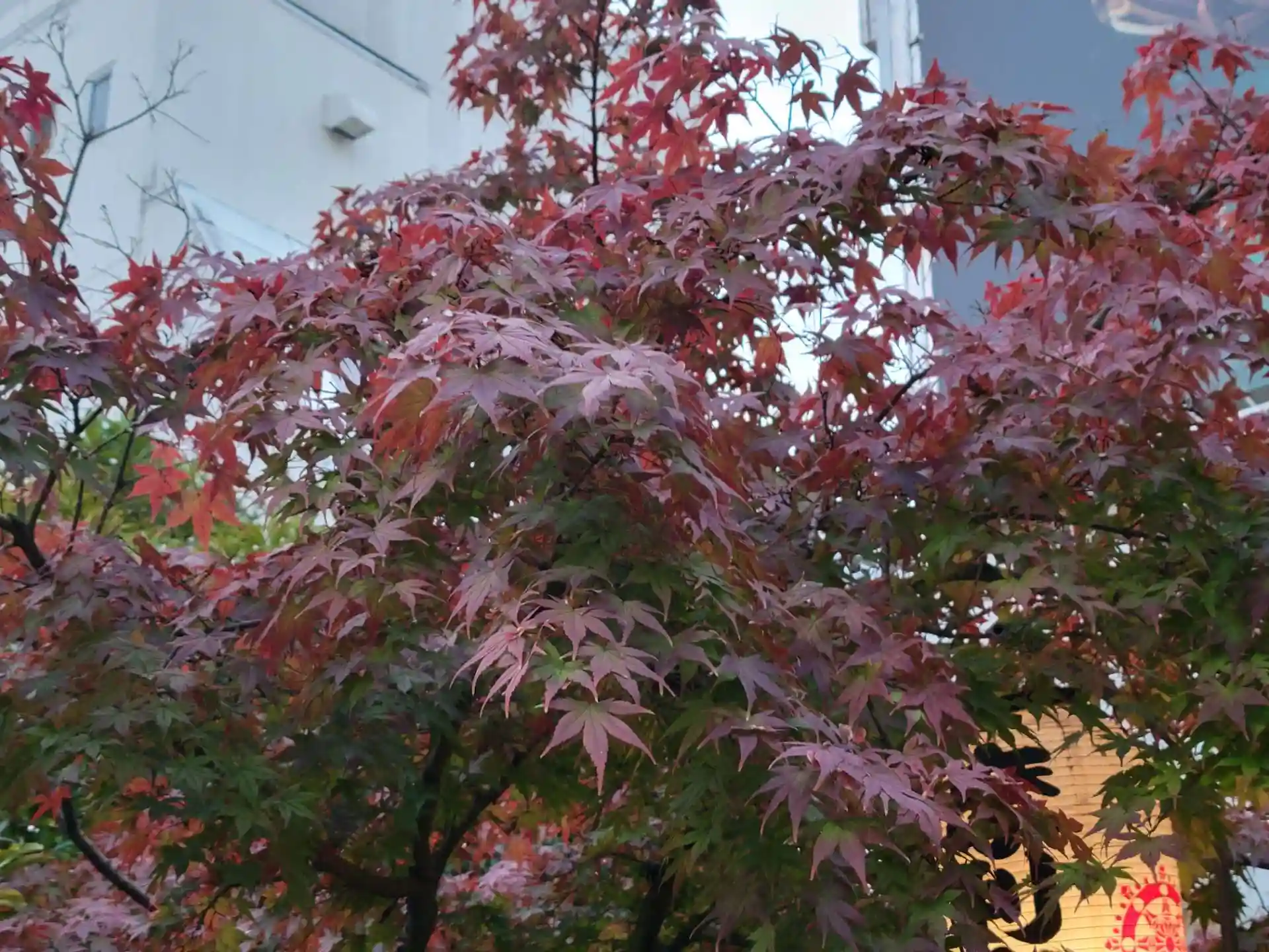 夕日の中、もみじが紅葉しており、素敵でした。