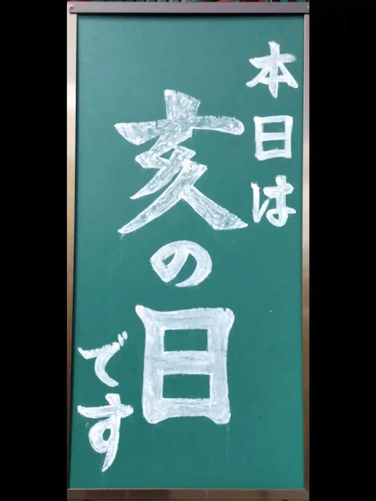 境内にあった黒板。“本日は亥の日です”とかかれていた。