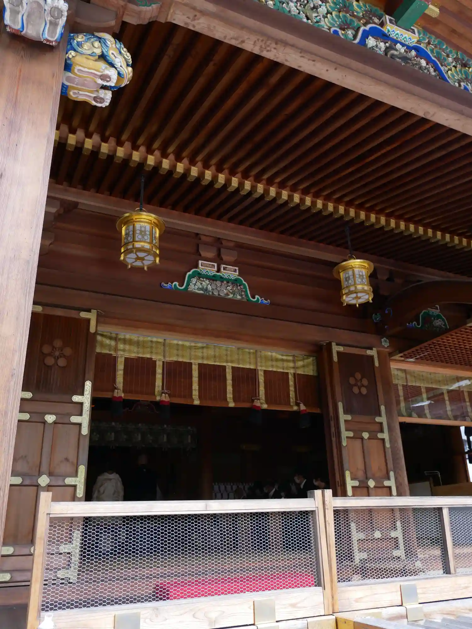 拝殿の大きな賽銭箱の飾り金具、素敵!