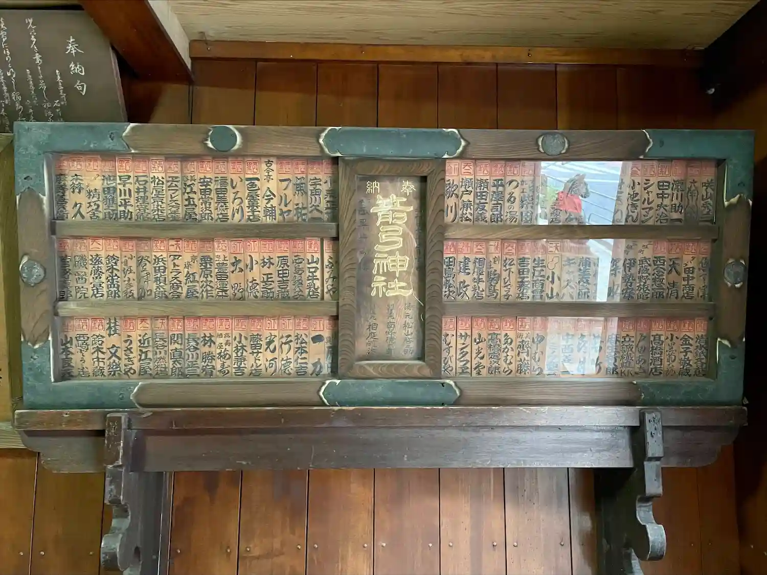 由緒書きによると、家光公から銀杏の御神木を拝領、関東大震災で類焼してしまった御神木で御神体を彫り今の社殿を造営したとのこと。銀杏造りって珍しいですよね。