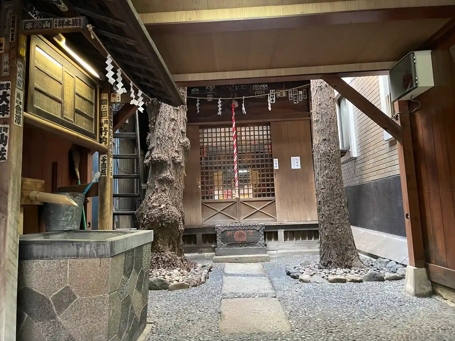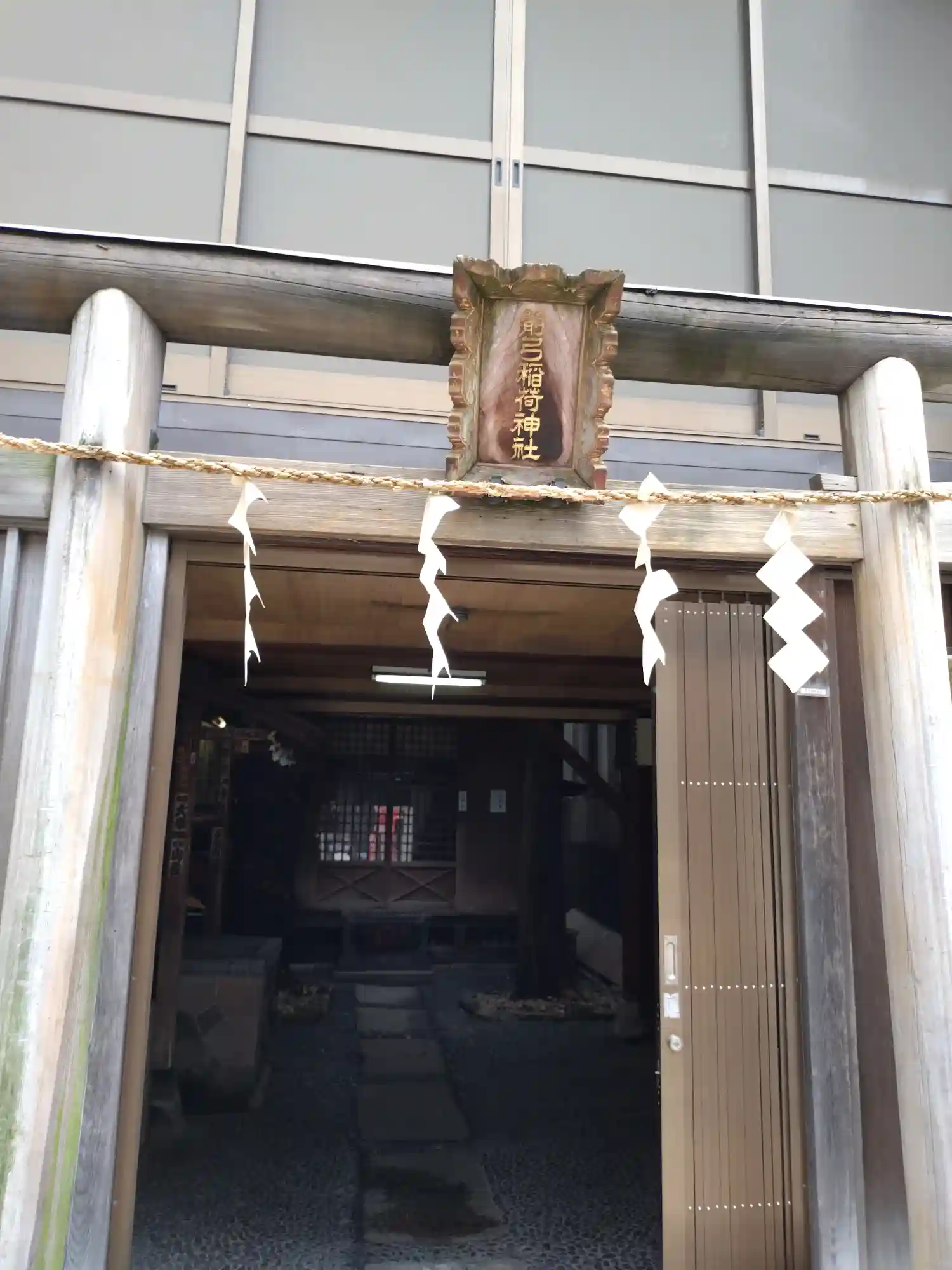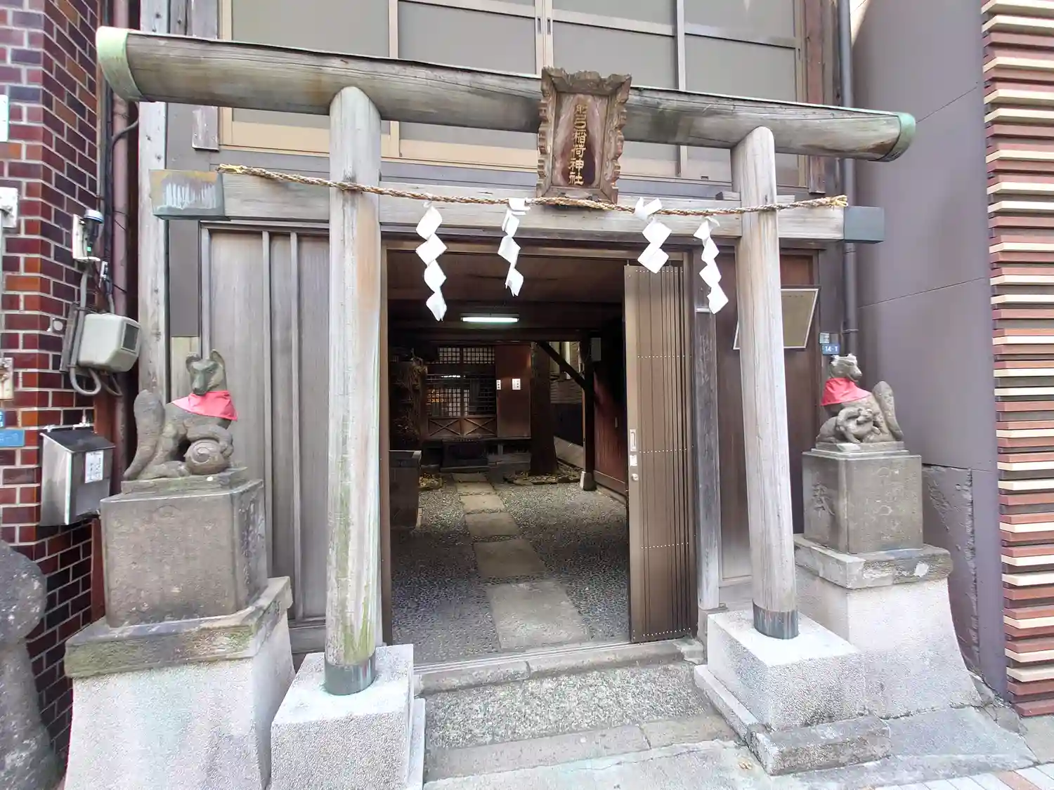 古い建物の前に鳥居⛩️がちょこんと