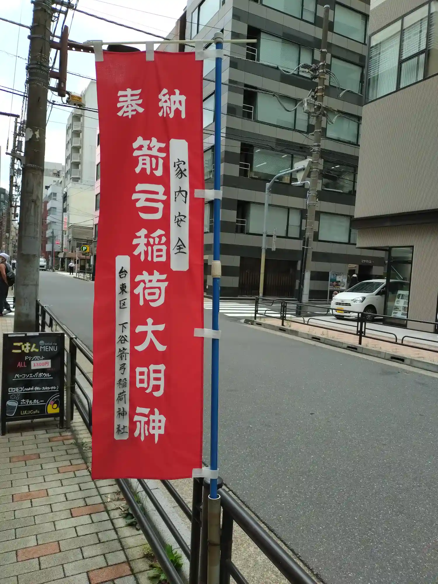 東京都台東区に鎮座する、箭弓稲荷神社を参拝。街の中にひっそりと建っている。