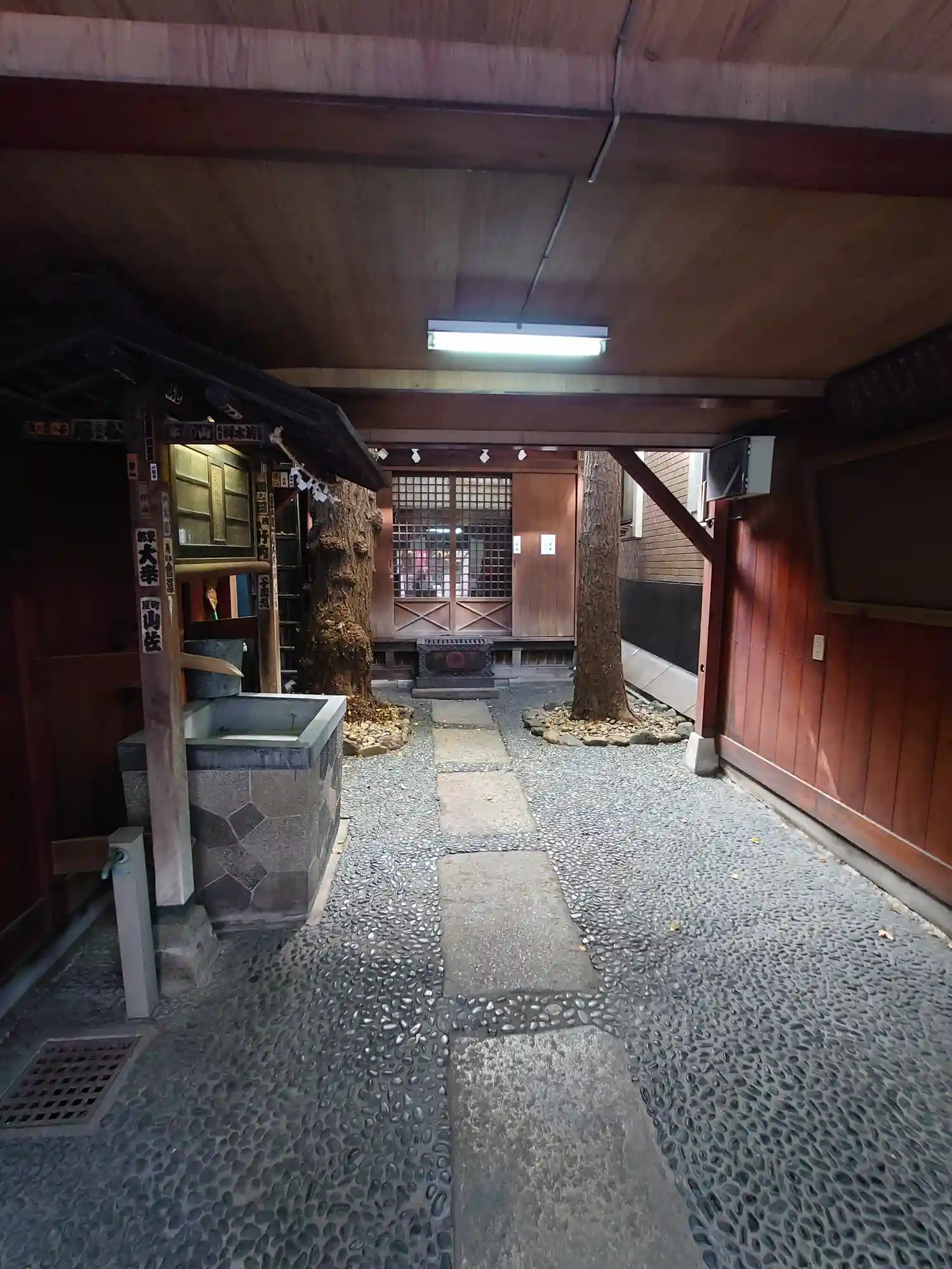 夜は鳥居の後ろでシャッターが閉まっていたのですが、朝見るとちゃんと境内がありました。