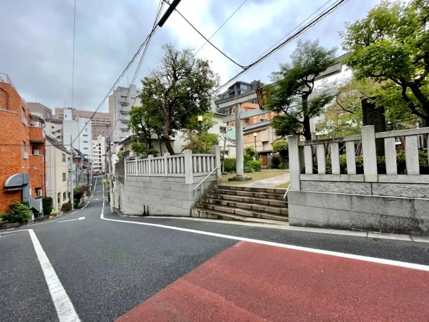 鳥居の前は急な坂です