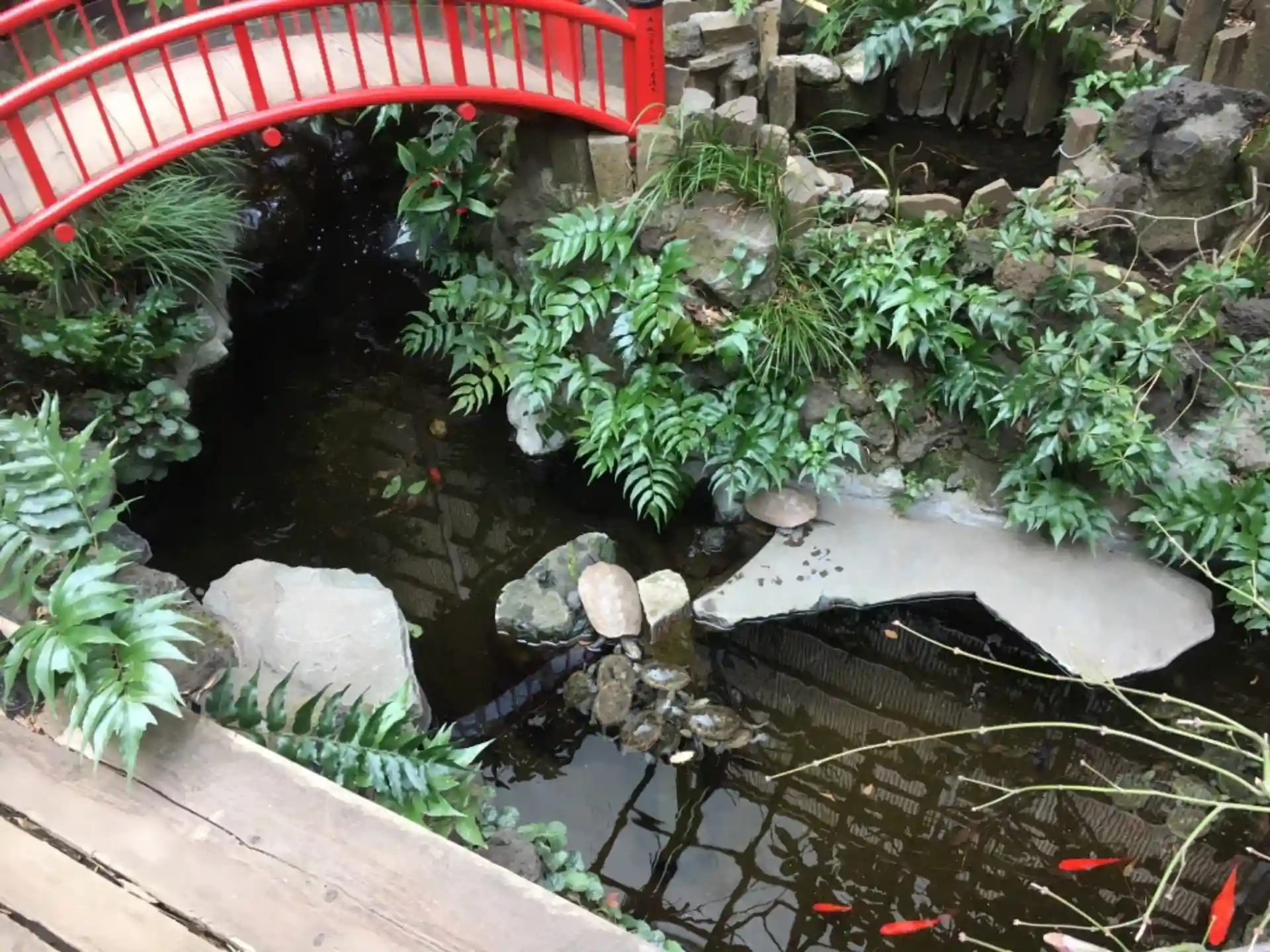 池の中ではきれいな甲羅の小亀が集まっていて可愛らしいです。亀の子寺とも。