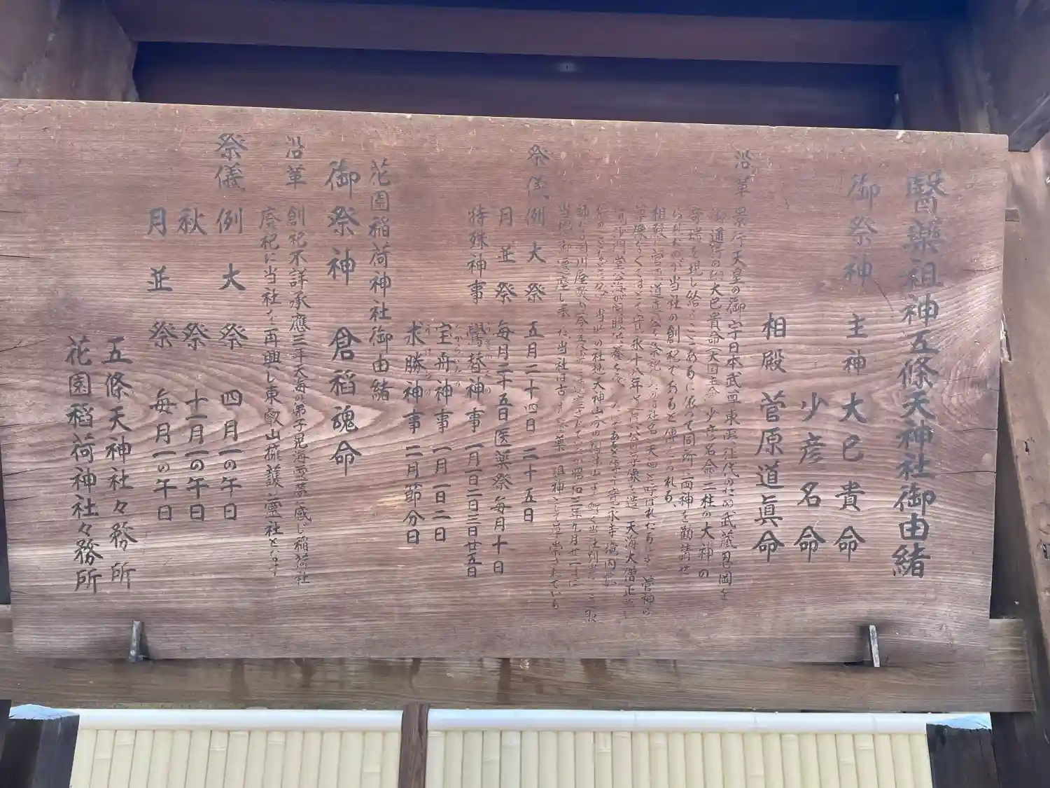 | ご祭神 | 《主祭神》 大己貴命 少彦名命 《配祀神》 菅原道真 |