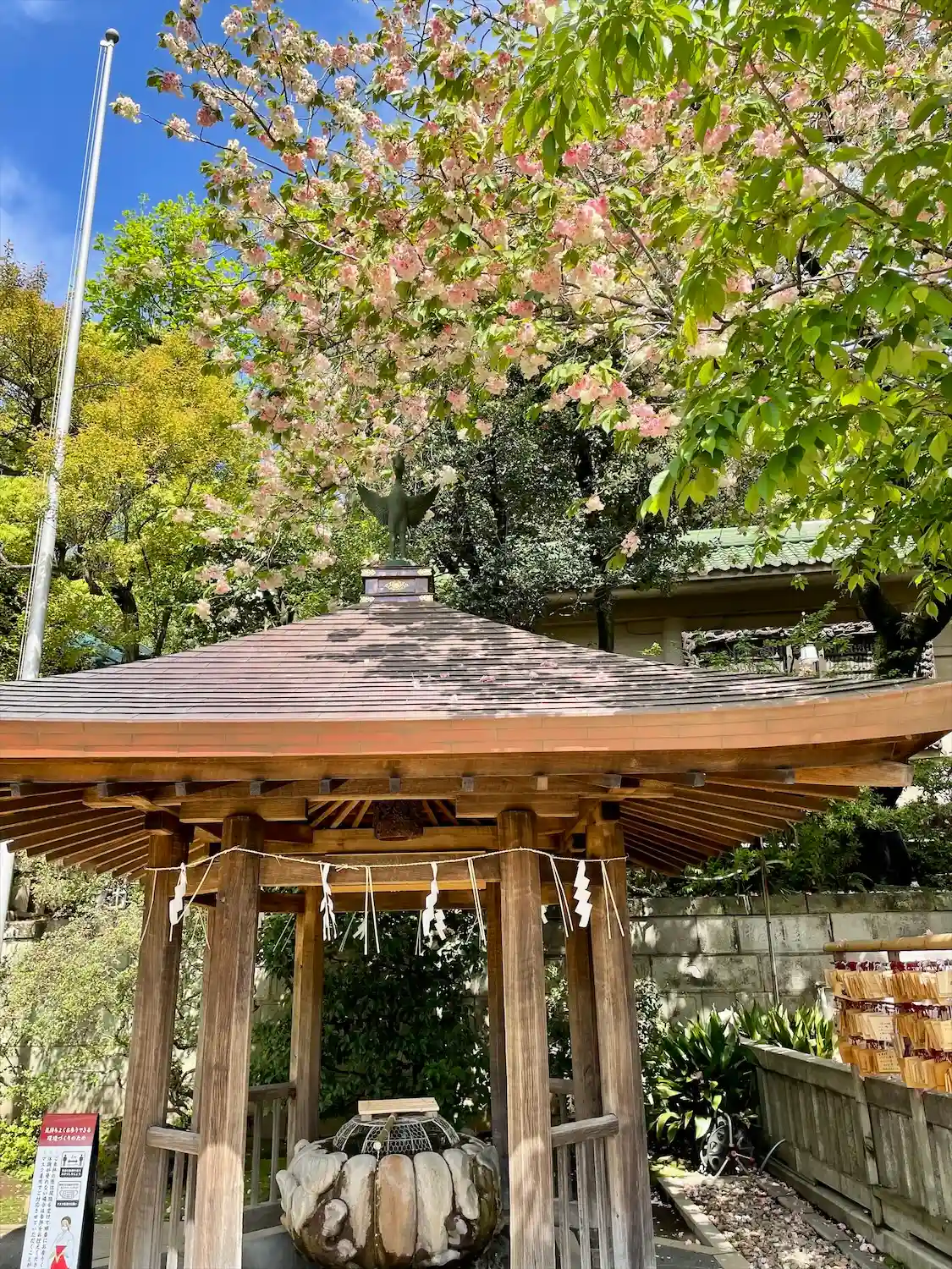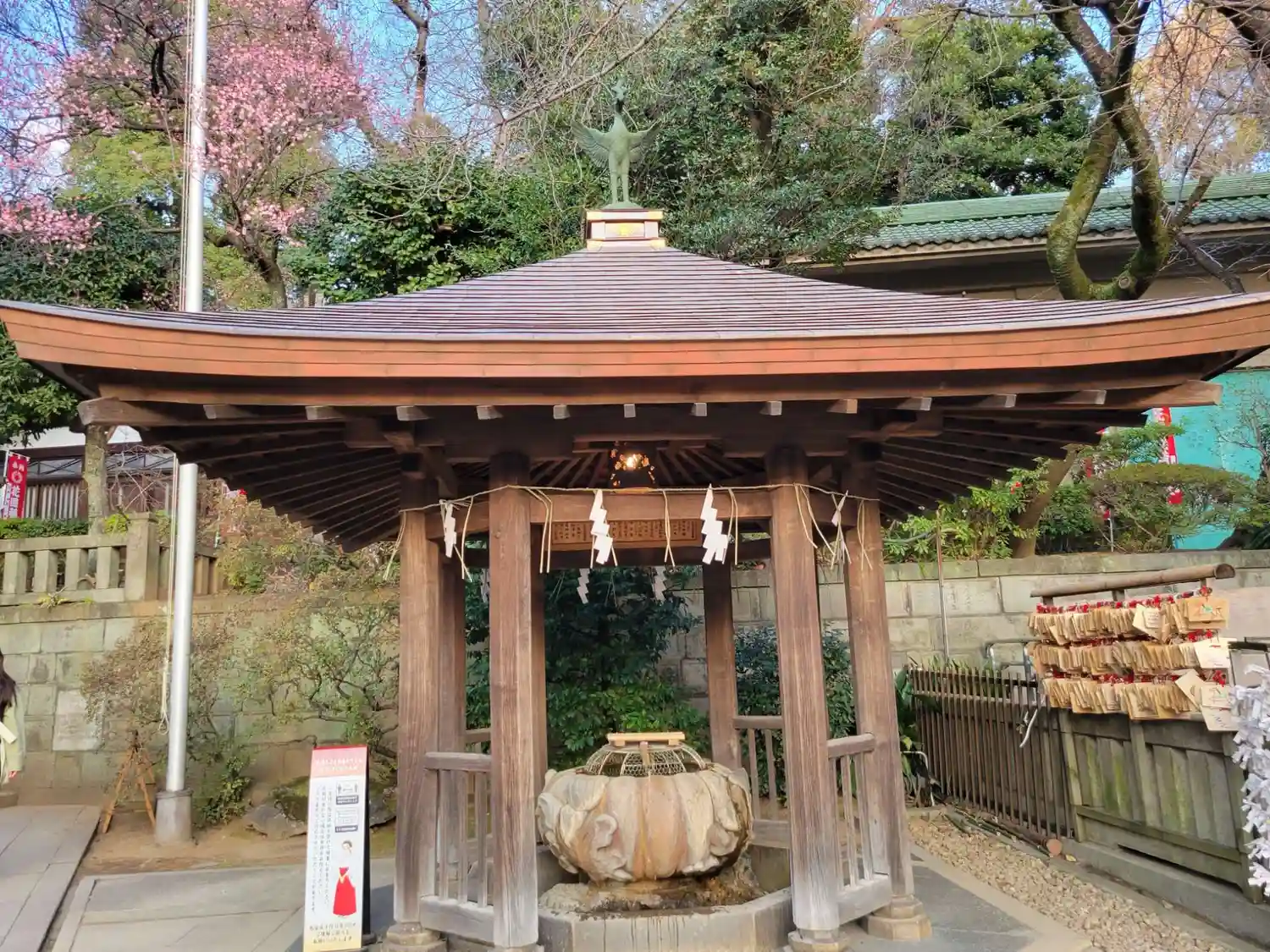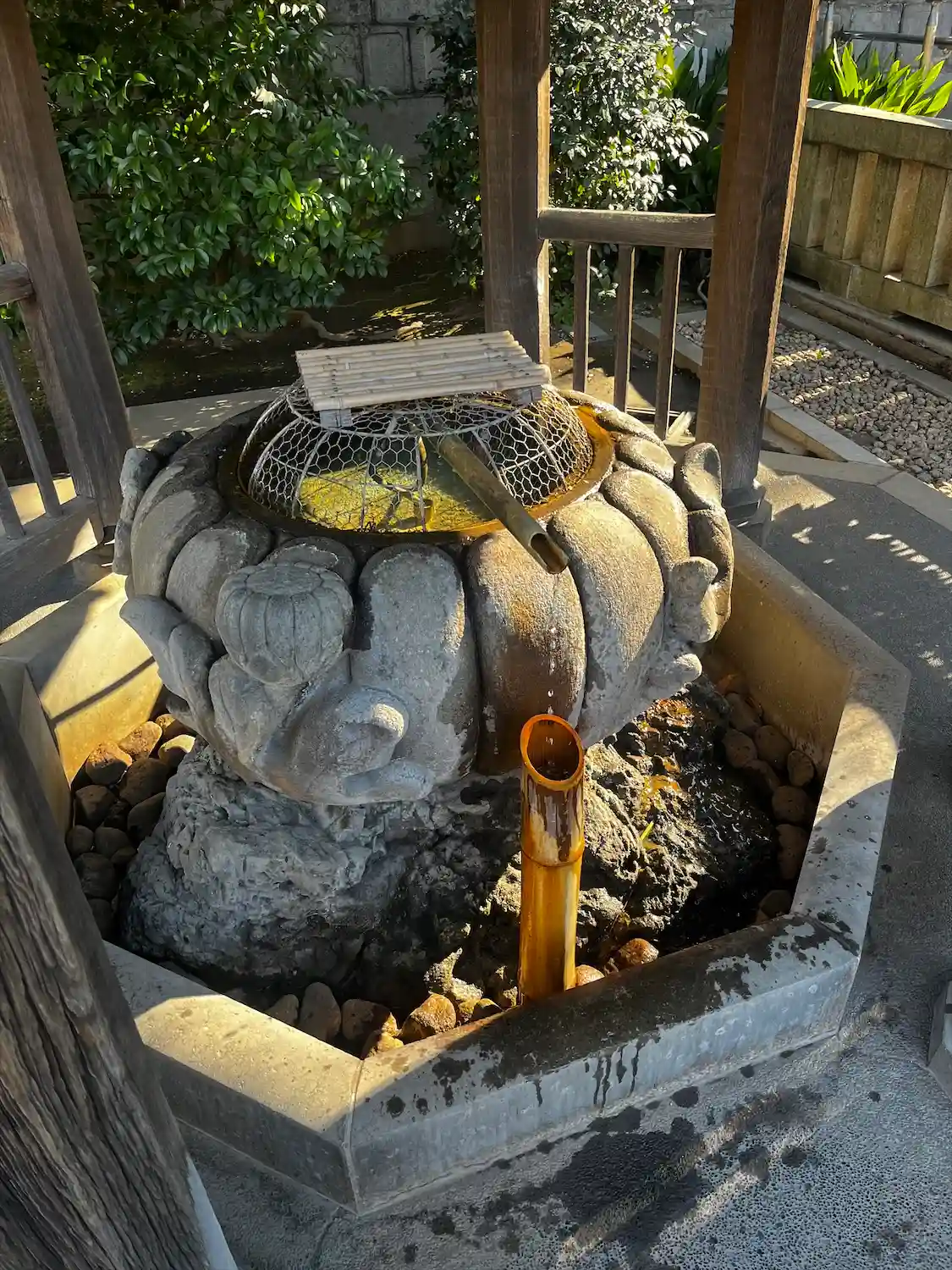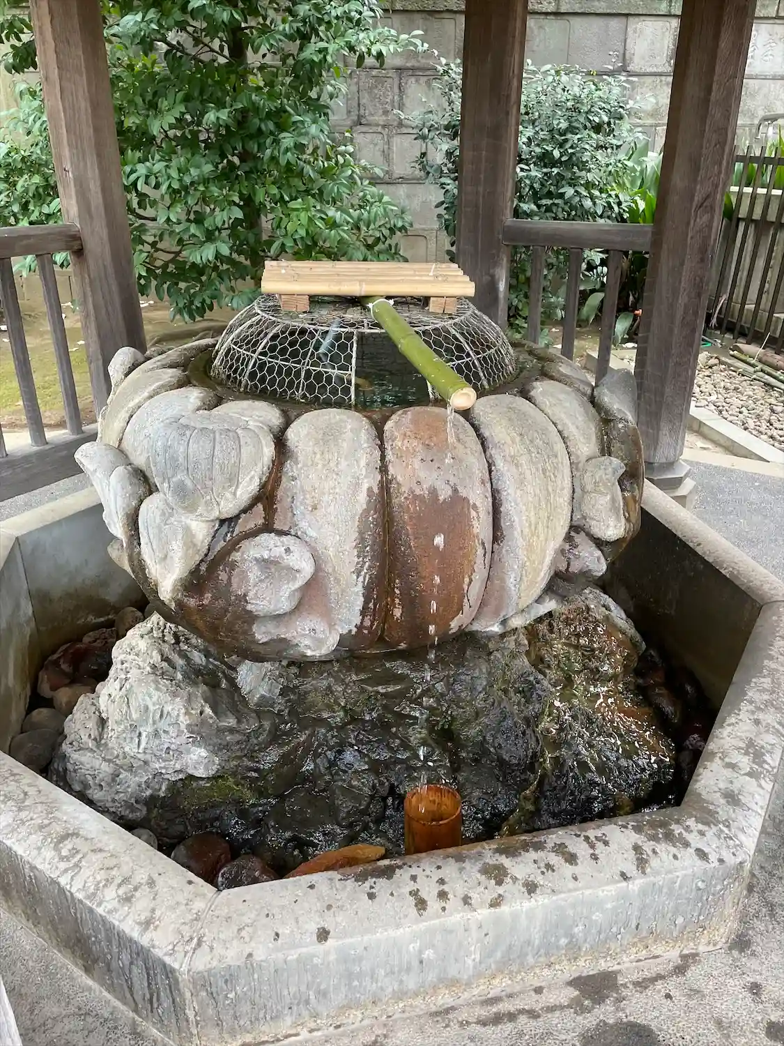円形の手水があります。