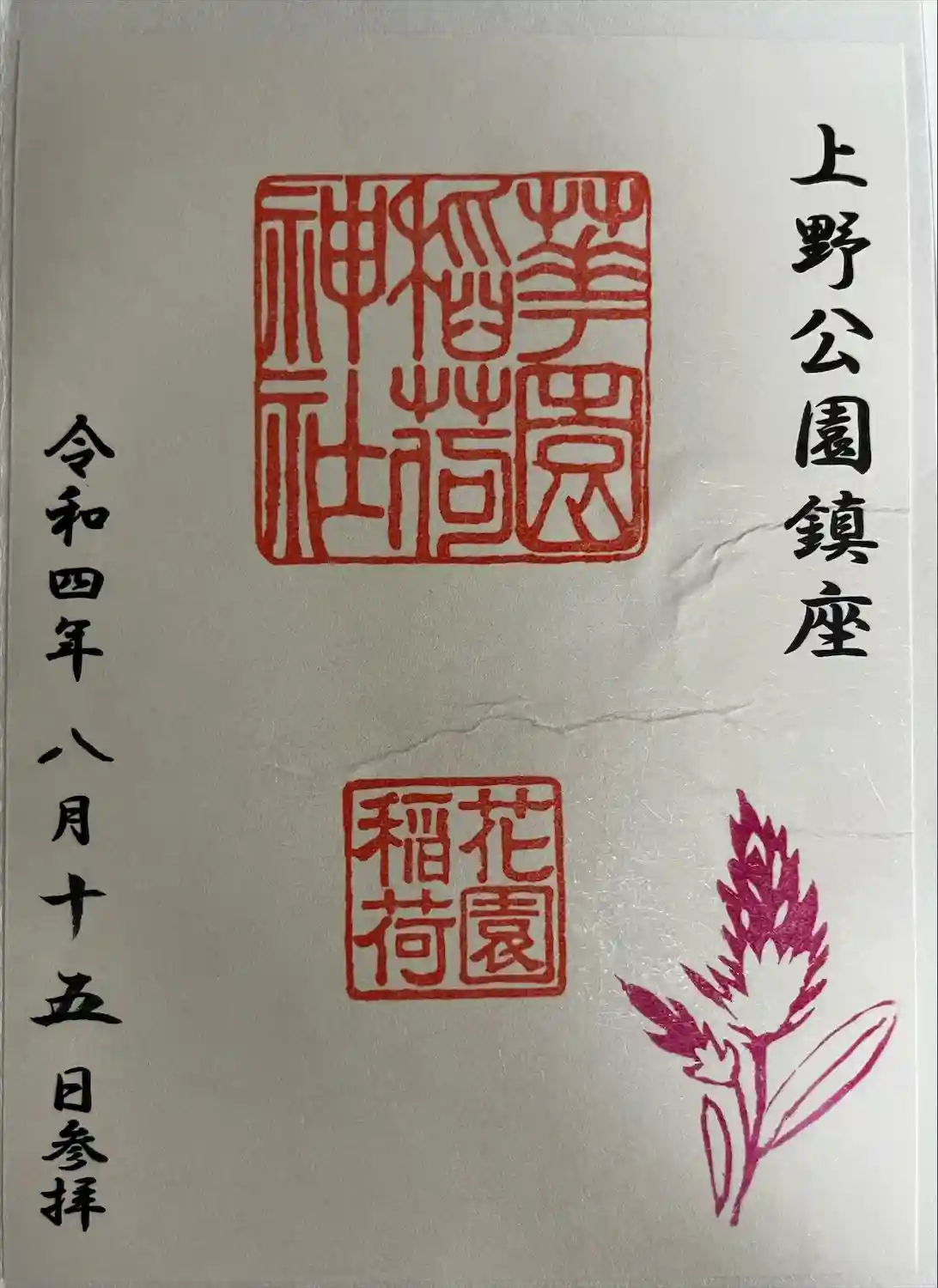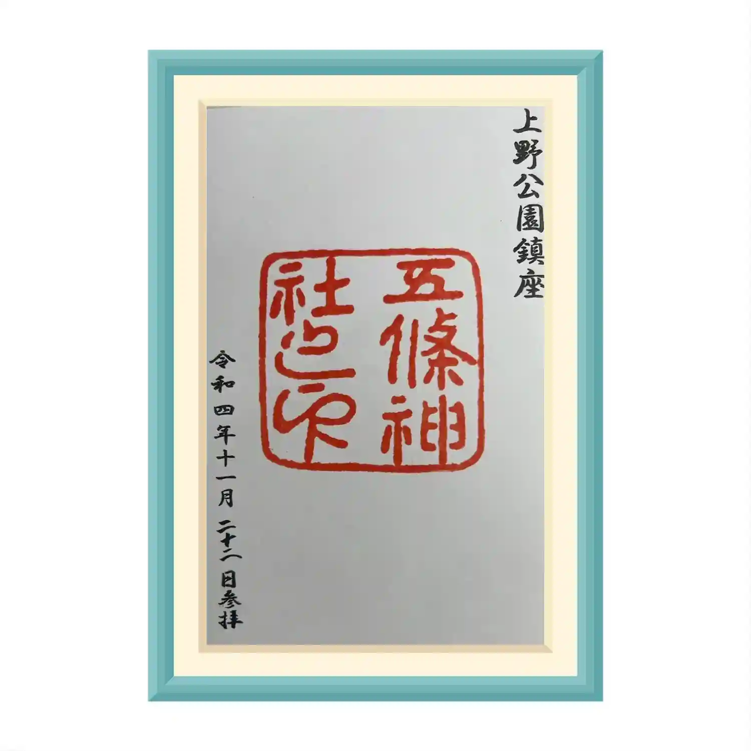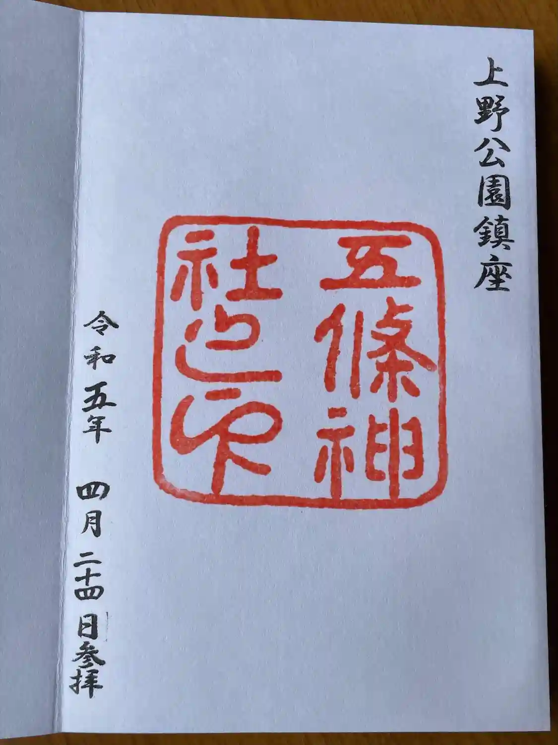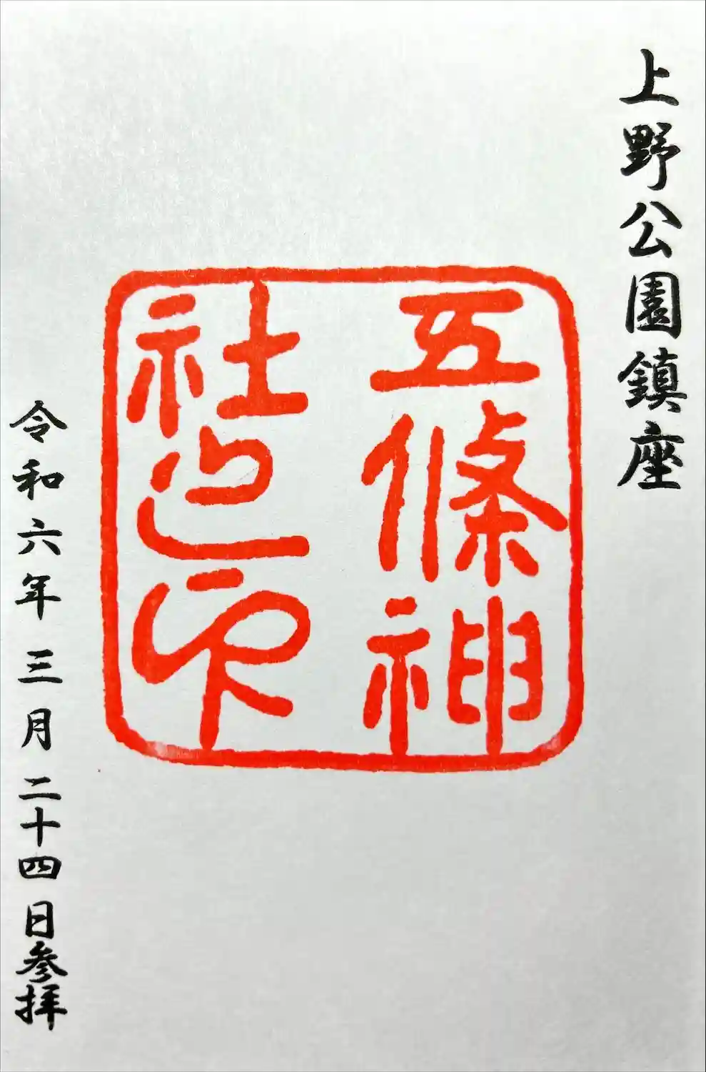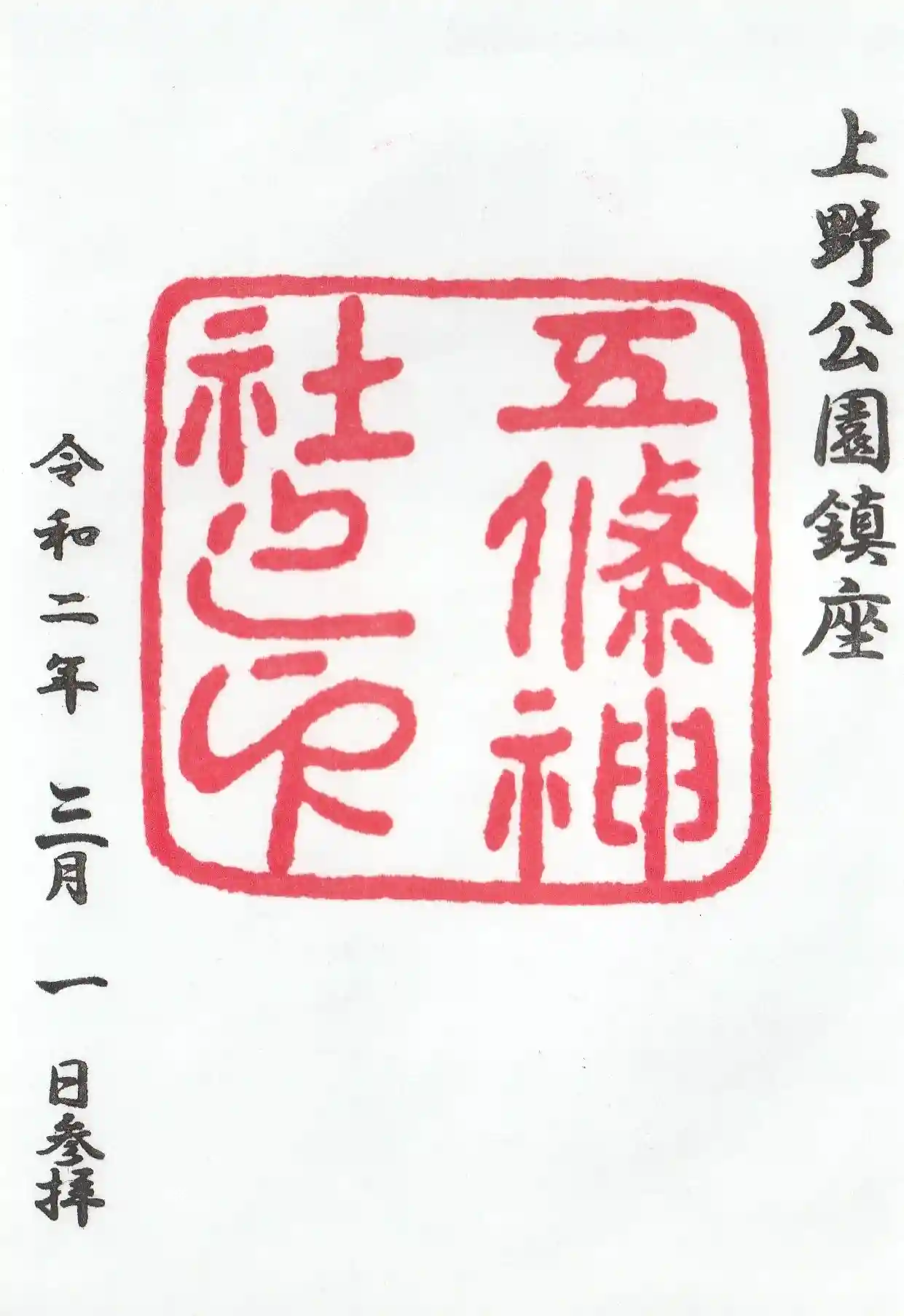 五條天神社(上野公園)の御朱印です。