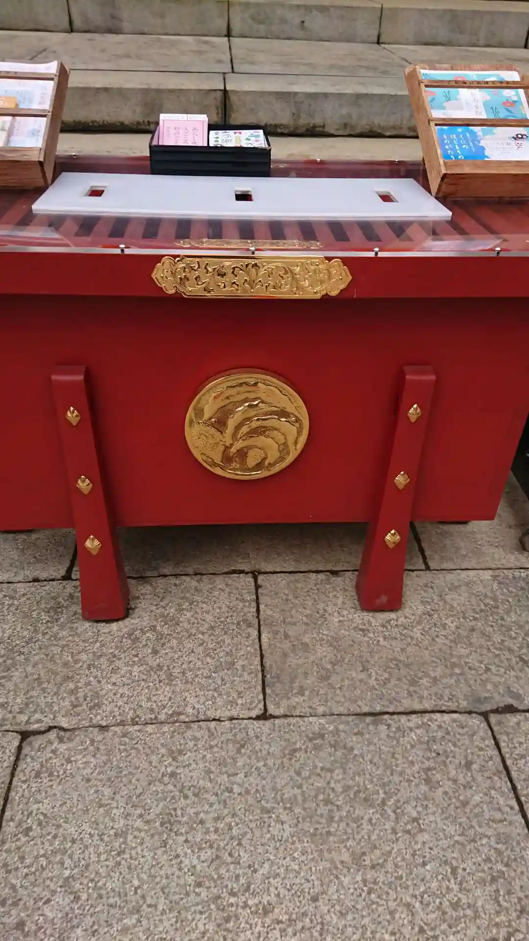 賽銭箱の社紋。粟の穂のデザインは珍しいそうです。
