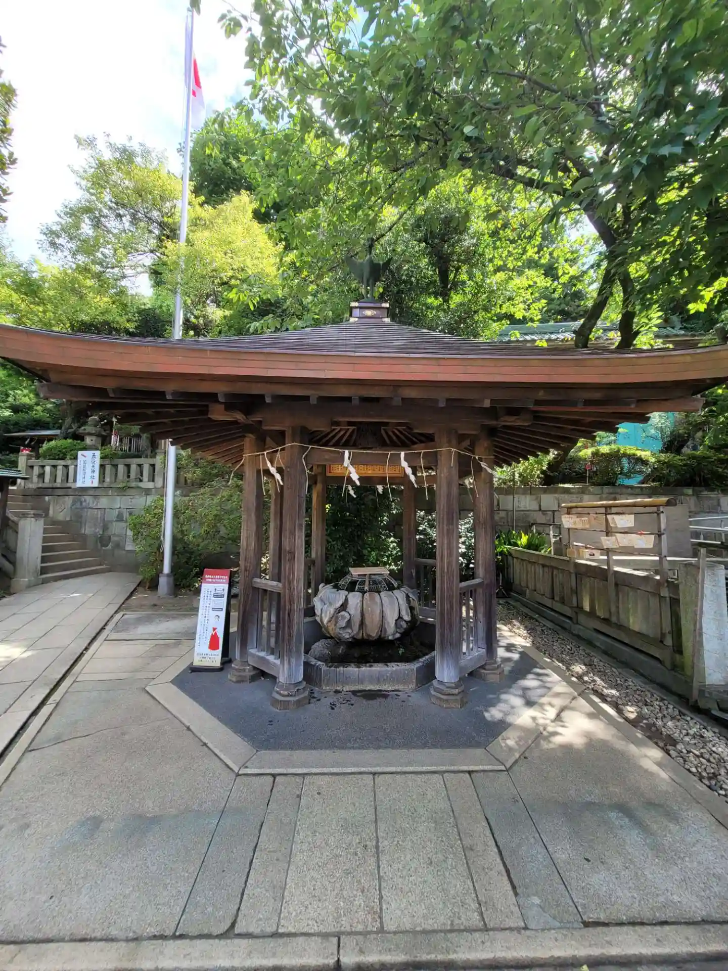 鳥居をくぐって階段を降りた先にあります。