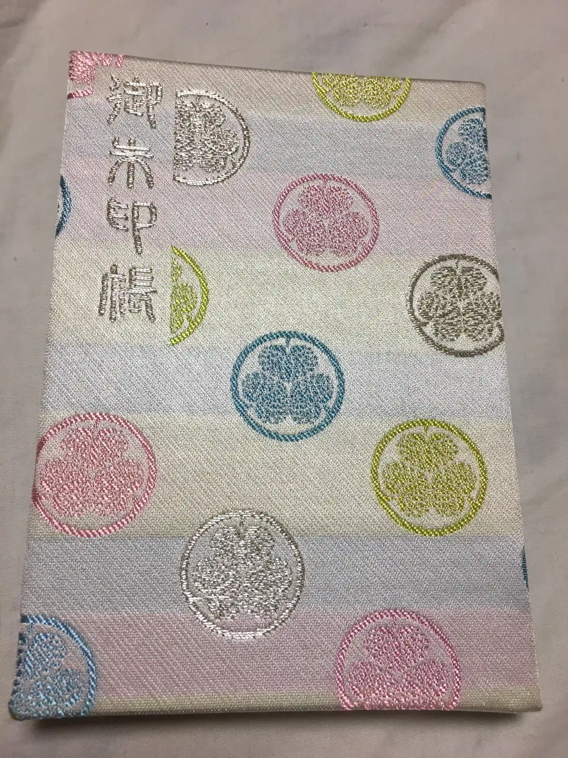 御朱印帳を購入したのですが白地にパステルカラーの葵の御紋が刺繍されていて、可愛らしいデザインです。御朱印はぼたん苑の時期限定の御朱印でした。