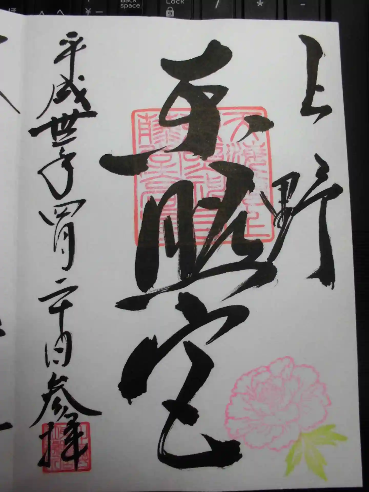 上野公園内にある文化会館で行われる某有名アーティストのライブに行った際 開場までの待ち時間を利用して 公園内を散策 その際立ち寄りました 当日はぼたん祭り開催期間中で ボタンの花をあしらった印の入った御朱印がいただけました