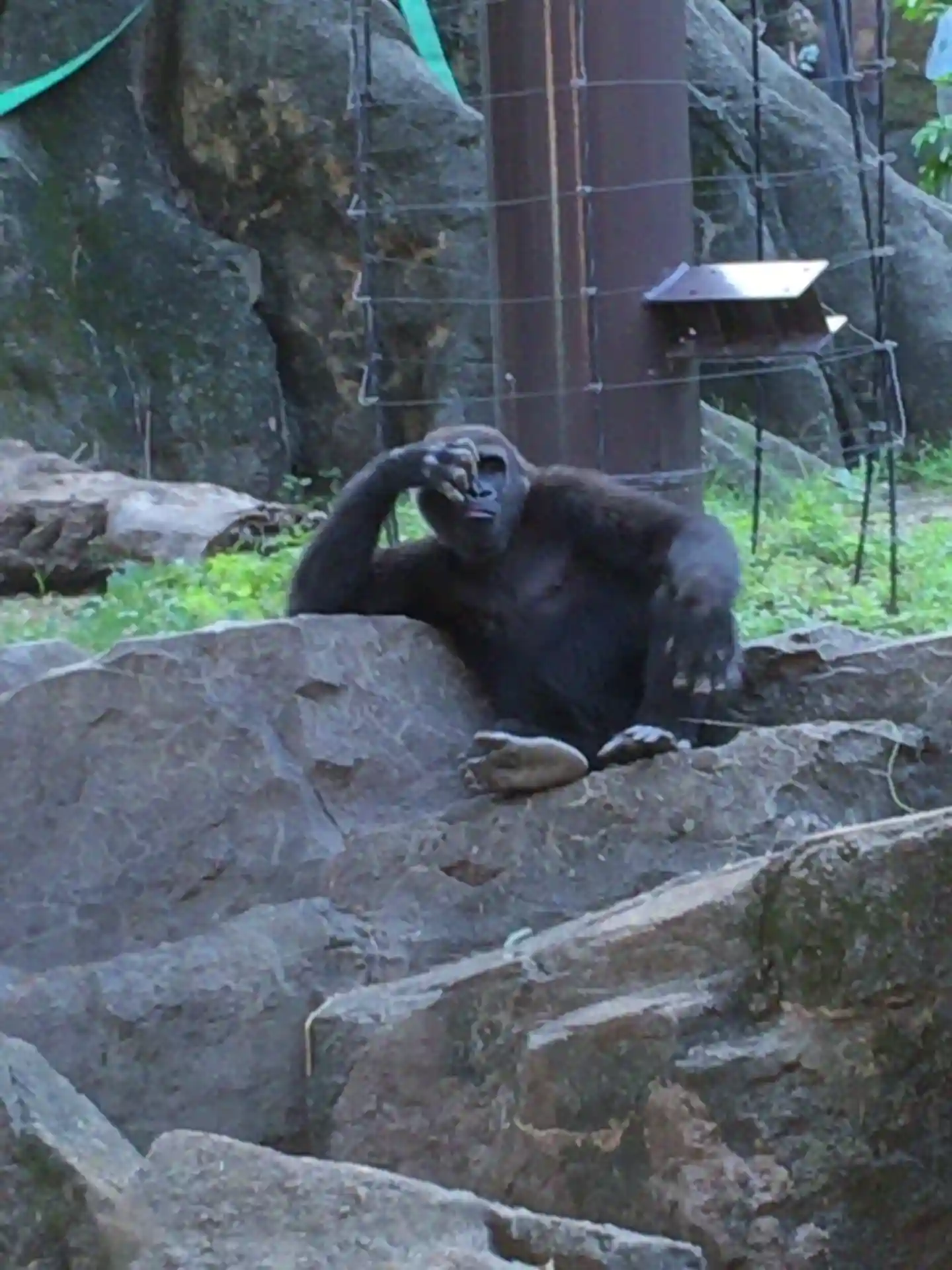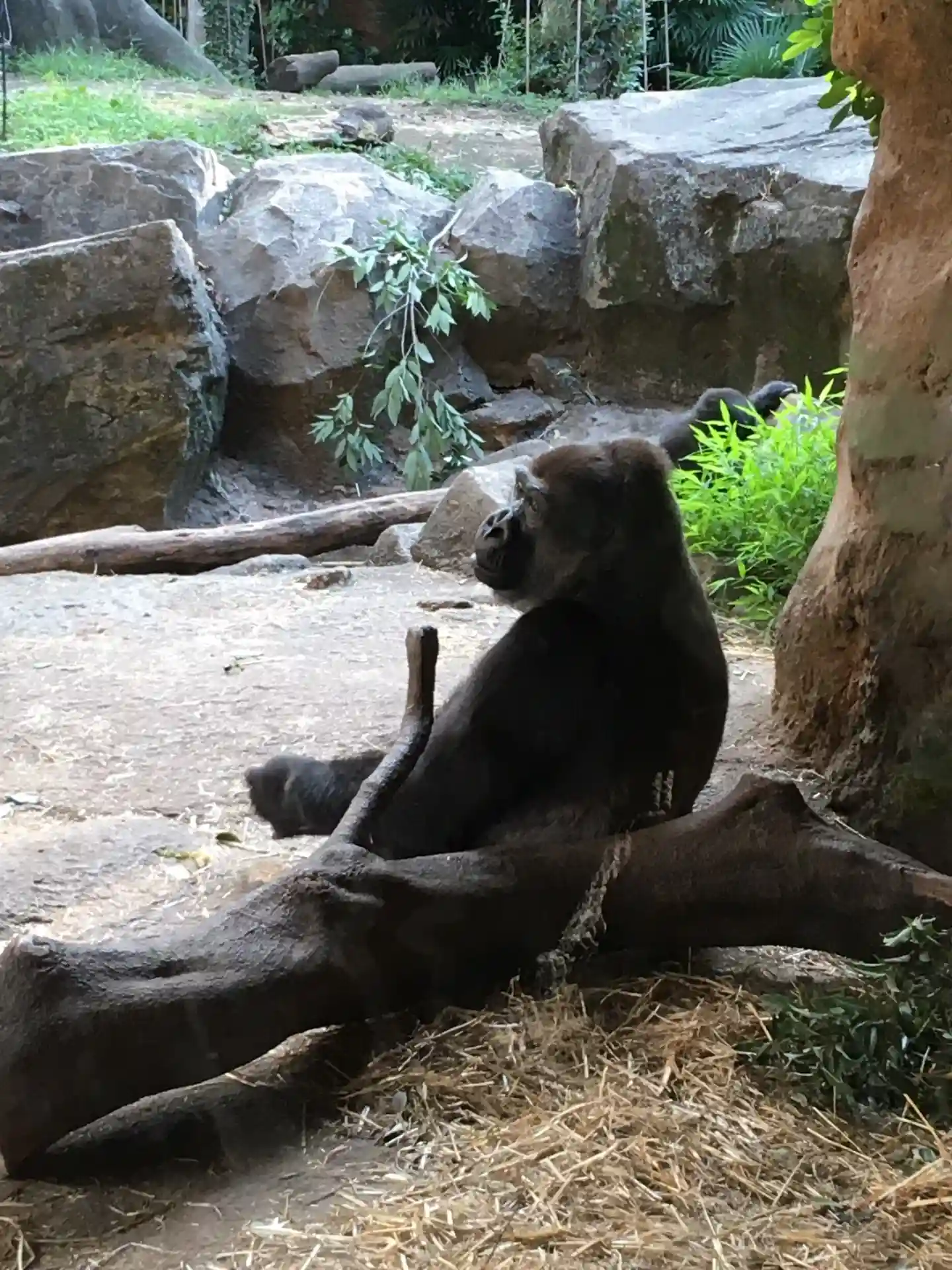 ずっと前を向いていたこのゴリラも、少しだけこっちを振り向いてくれました。この後、またぷいと前を向いてしまいました。
