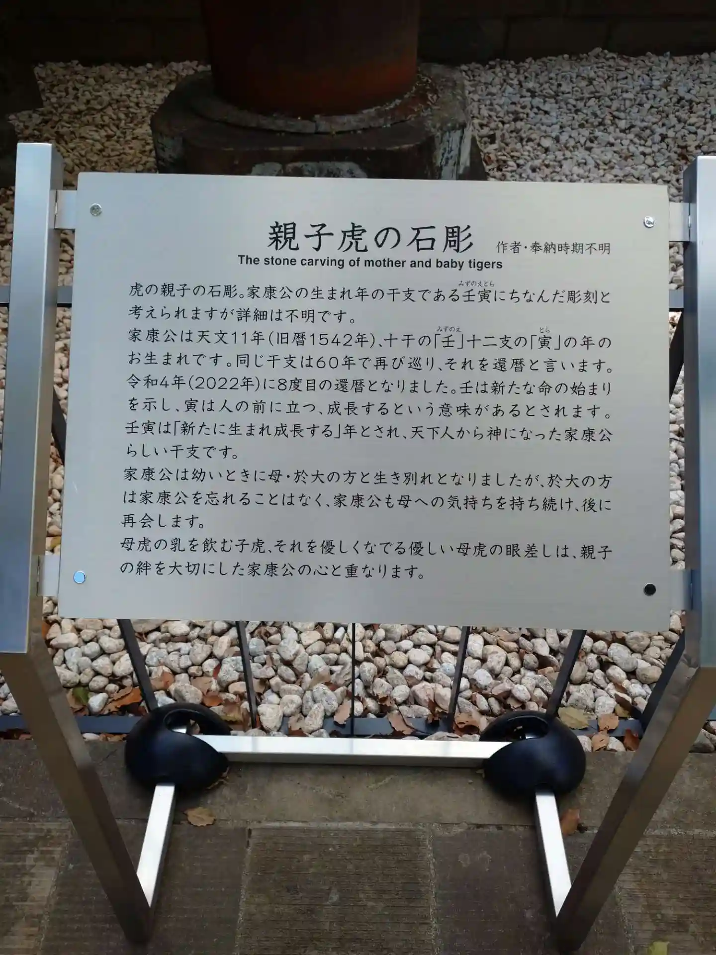 御朱印を拝受した後、こちらも前回参拝した時は見落としていた「親子虎の石彫」を発見。私は来年還暦になります。丙午(ひのえうま)です。