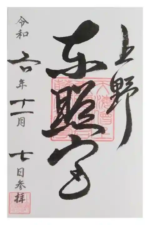 上野東照宮の御朱印を書置きでいただきました