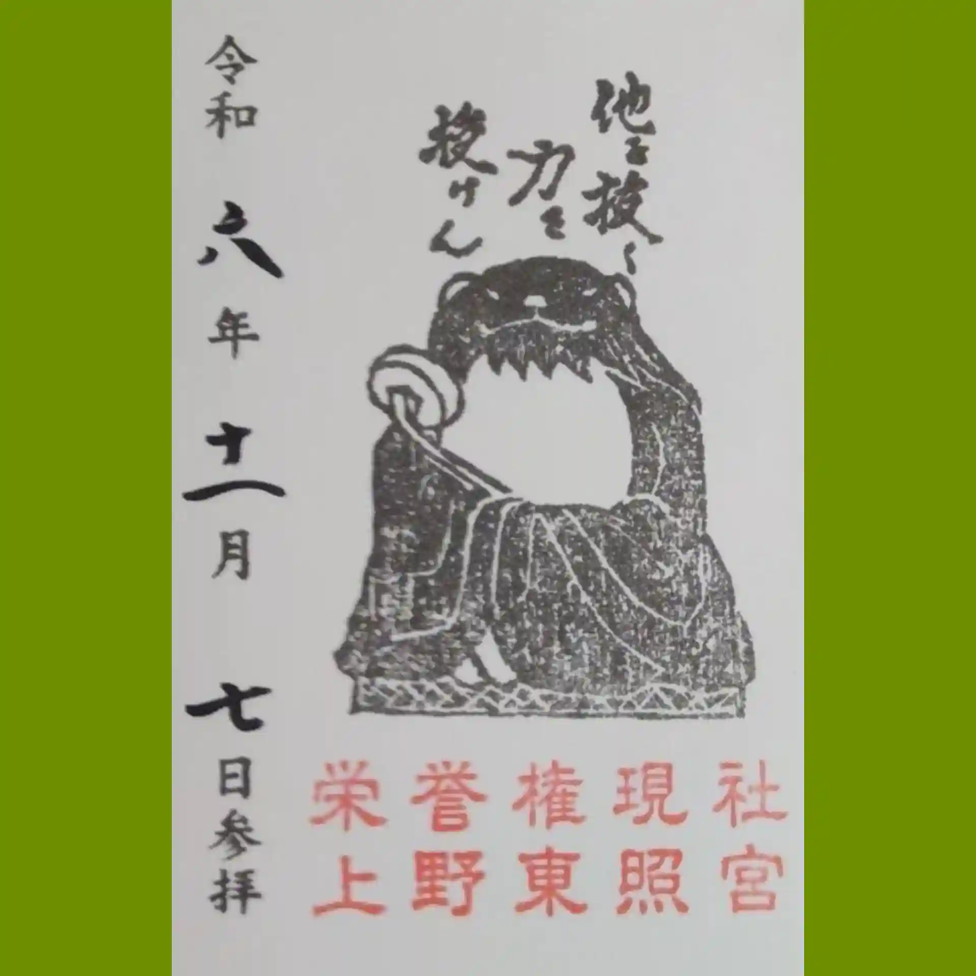上野東照宮の御朱印を書置きでいただきました