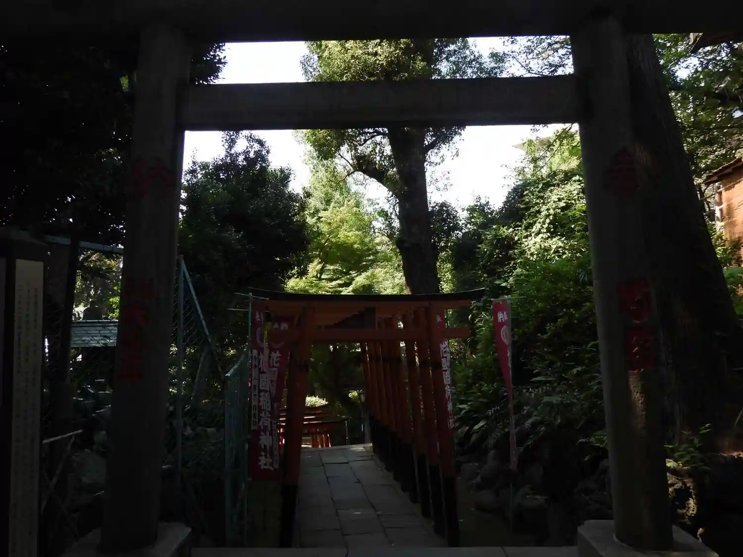 鳥居と幟が立っています。