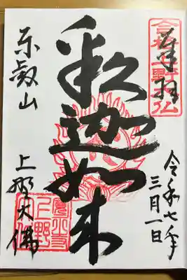 上野大佛(薬師如来)の御朱印を直書きでいただきました