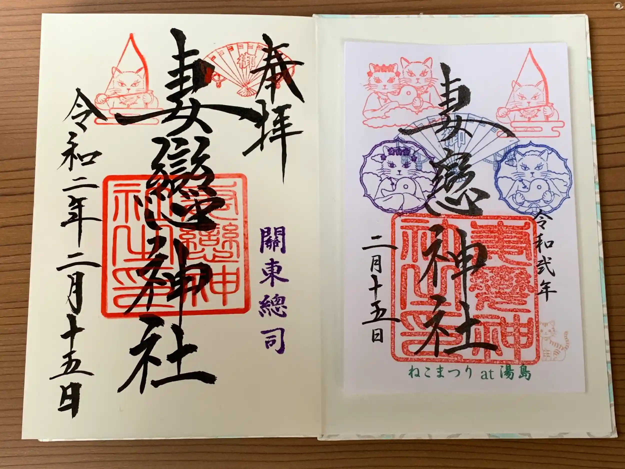 文京区の湯島にあるパワースポット、妻恋神社に行って、同時に第10回 ねこまつり at 湯島 ~猫でつなぐ湯島のまち~」が開催されており、猫好きにはたまらないイベント、「ねこまつり」の限定フードやスイーツ、「ねこまつり」ならではのイベントをめいっぱい楽しんで、猫三昧を満喫できた♫ お参りの前に王冠印雑貨店で御朱印帳をに購入出来た。
