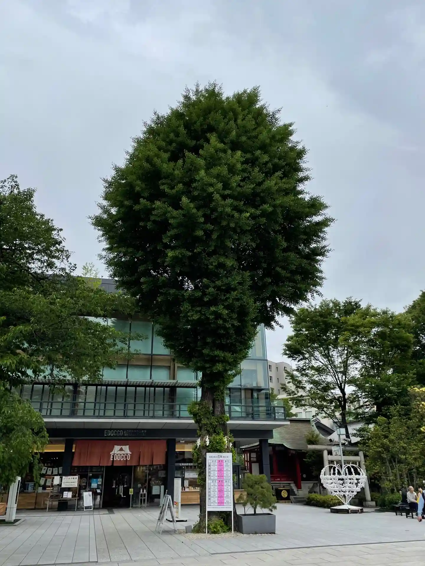 江戸一番の神田明神。神田祭りで有名です。御影石が敷き詰められた境内は、まさに都会型大神社の典型です。歴史や風情は感じにくいですが、朱色も鮮やかな山門や本殿はとても立派で圧倒されます。御神木はイチョウ、ちょっと刈り込まれてますが、20m近い大木です