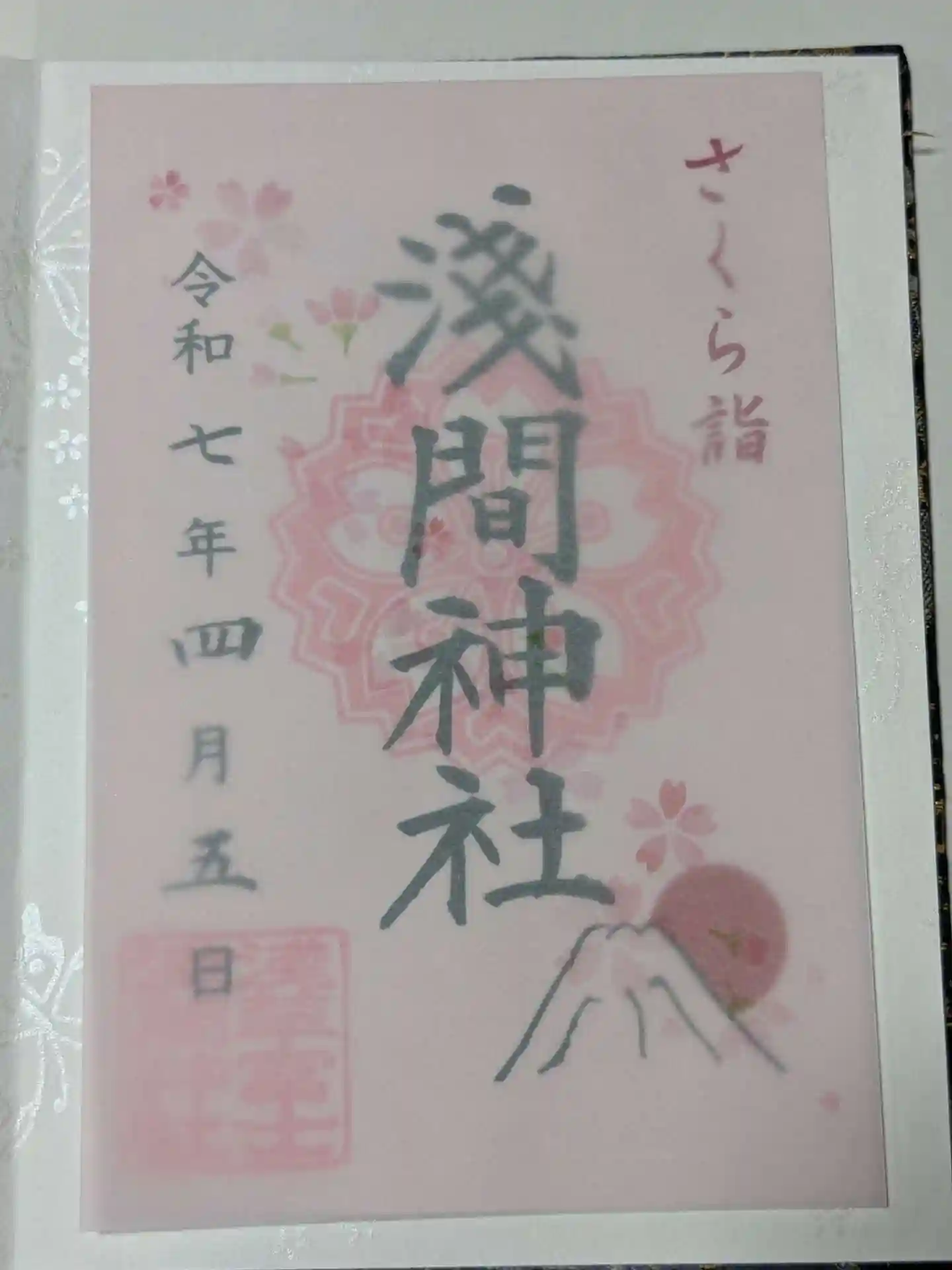 木花咲耶比売命(このはなさくやひめのみこと)をおまつりしていて、中央には桜をモチーフにした社紋が押されます。